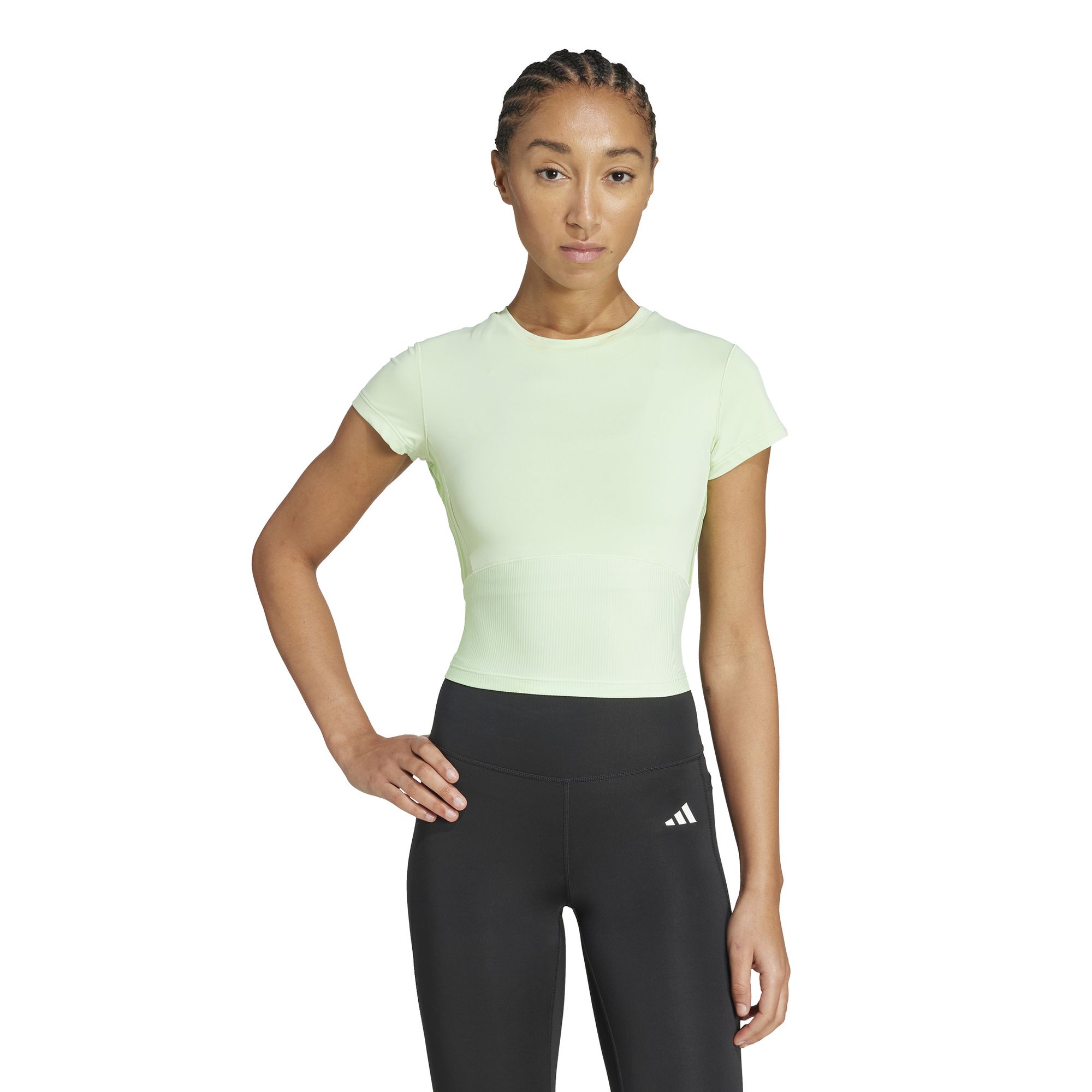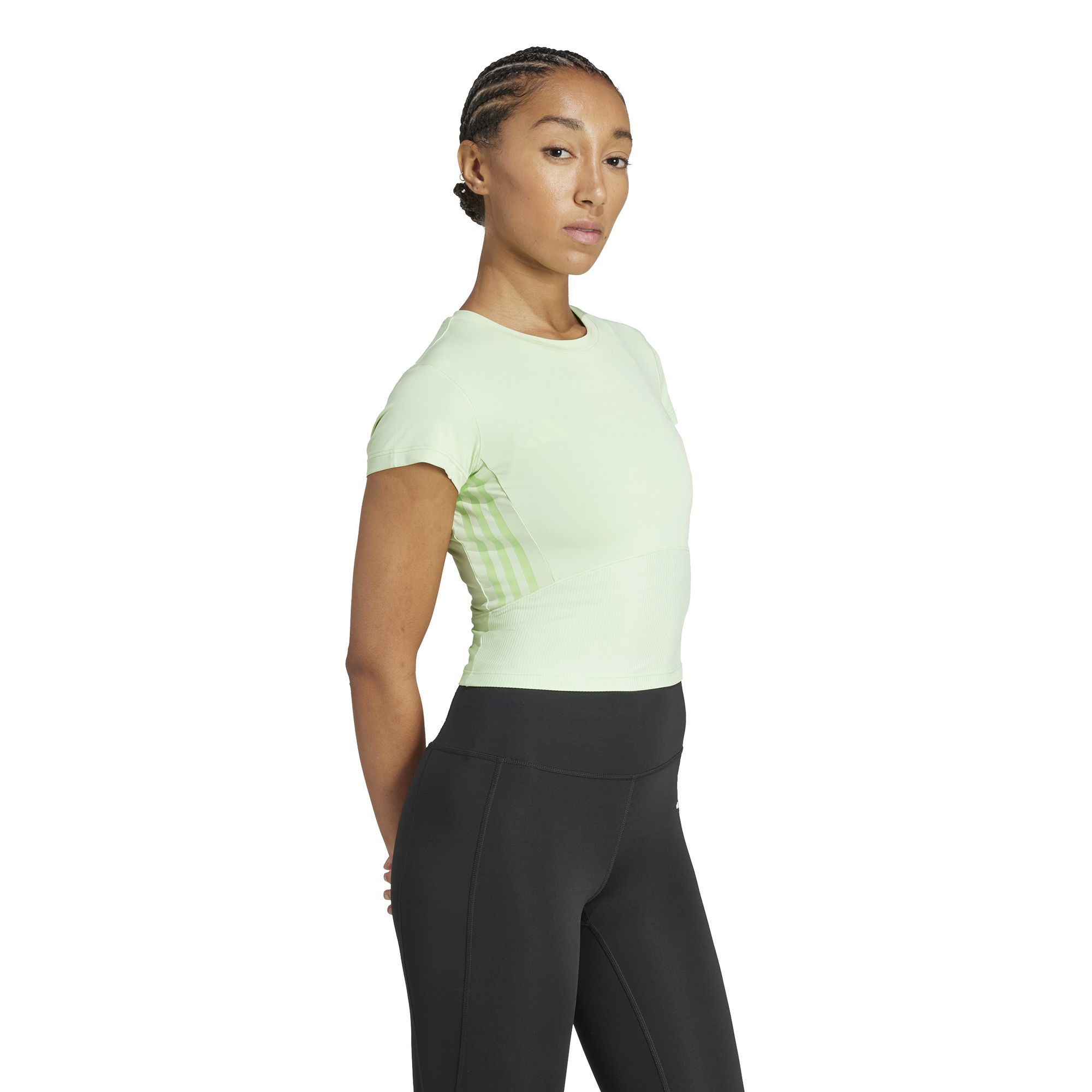 Dieses schmal geschnittene T-Shirt von adidas kombiniert den Look eines klassischen Baby-T-Shirts mit modernen Details für einen sportlichen Look. Strategisch platzierte gerippte Einsätze sorgen für Struktur und Dimension. Die kürzere Passform macht dieses Top zum idealen Begleiter für hoch taillierte Hosen. CLIMACOOL leitet Feuchtigkeit von der Haut ab und sorgt für ein kühles und trockenes Tragegefühl – keine Ablenkung, nur Leistung. CLIMACOOL-Materialien ermöglichen ein schnelles und effizientes Feuchtigkeitsmanagement. Dank schnell trocknender Fasern fühlst du dich angenehm frisch.