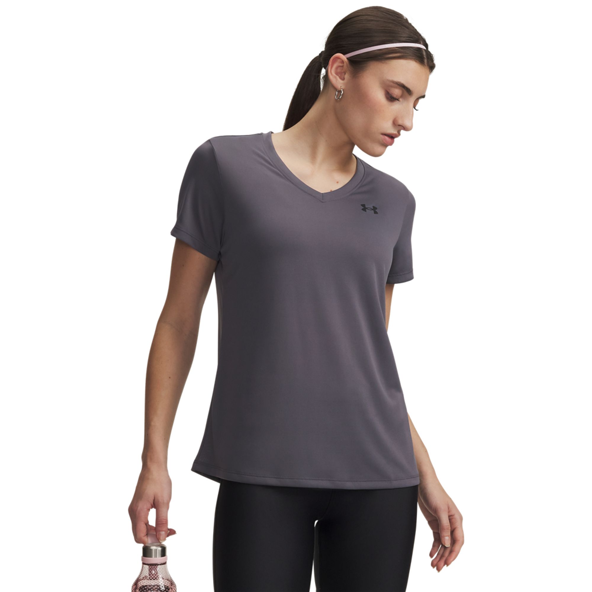 UA Tech™ Kurzarm-Oberteil mit V-Ausschnitt für Damen: UA Tech™ ist unsere absolute Lieblingstrainingsbekleidung: locker, leicht und hält angenehm kühl. Was will man mehr?