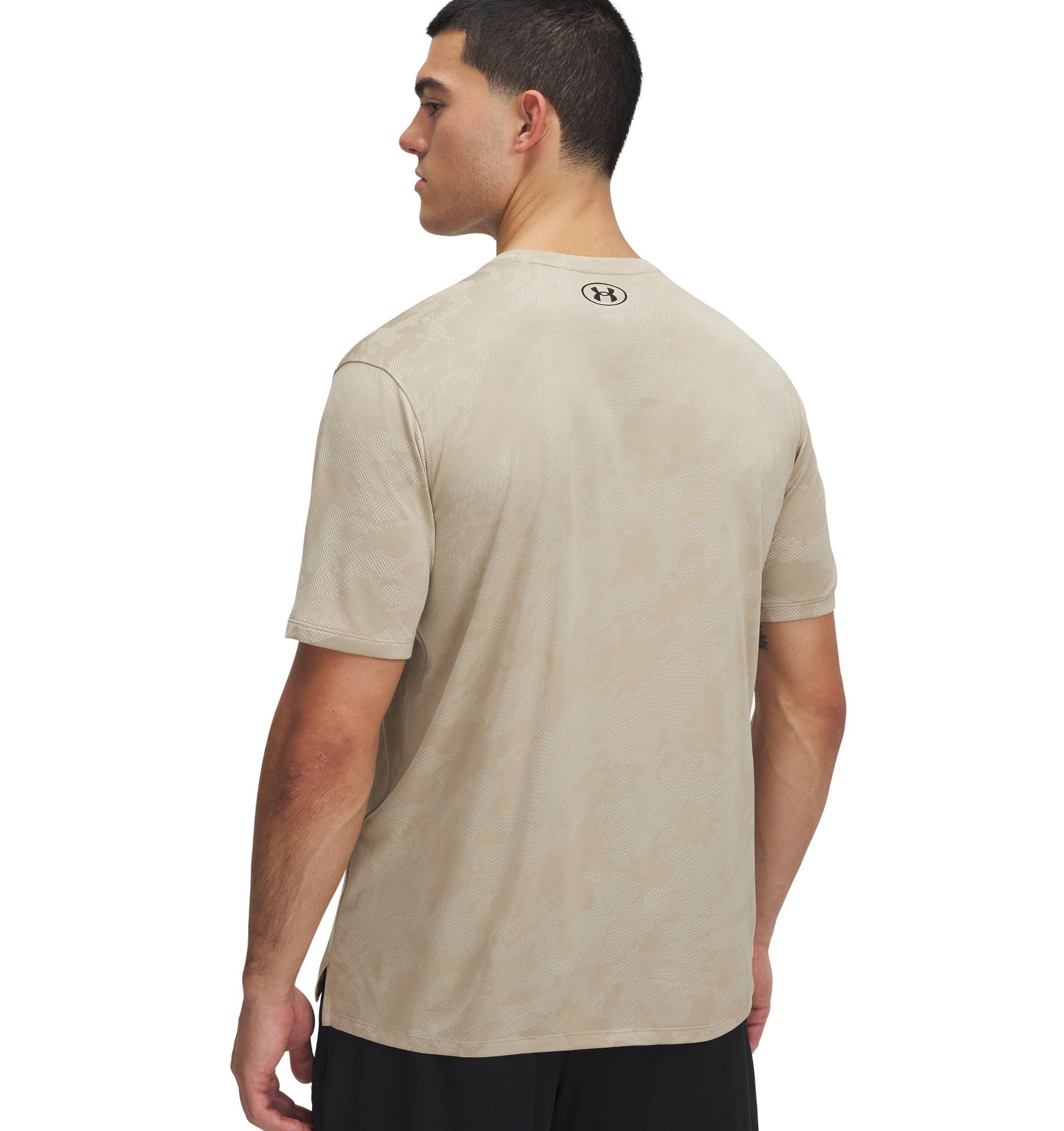 Weiches UA Tech™-Gewebe mit durchgehendem Jacquard für ultimative Atmungsaktivität;Das Material leitet Schweiß ab und trocknet sehr schnell