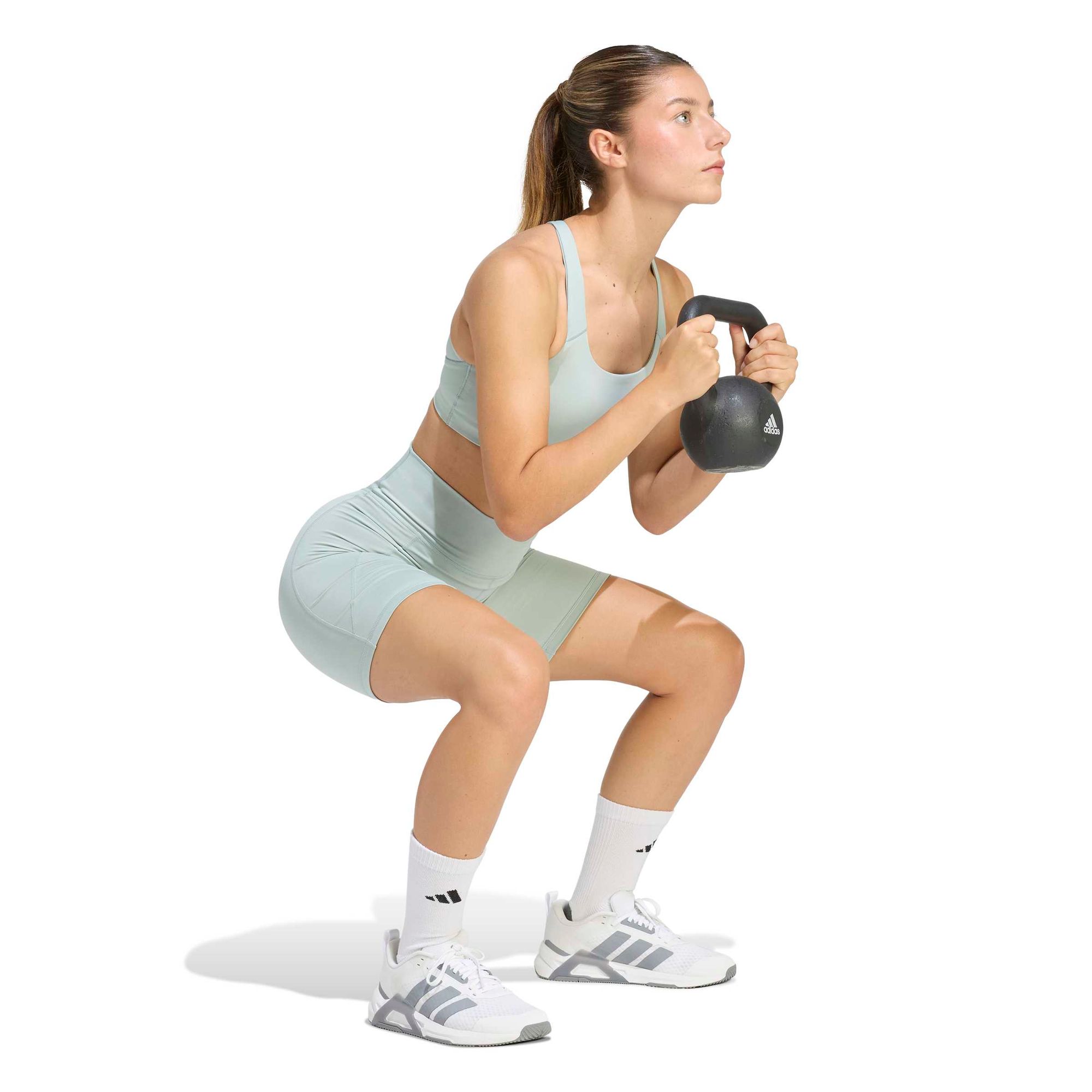 Entdecke mit diesen kurzen Leggings von adidas deine neuen Workout-Must-Haves. Sie sind durch und durch auf Performance ausgelegt und geben dir mit der AEROREADY Technologie ein angenehm trockenes Tragegefühl, auch wenn du dich so richtig pushst. In der verdeckten Tasche am Oberschenkel kannst du wichtige Kleinigkeiten sicher verstauen, damit du unbesorgt rennen, springen und dich strecken kannst.