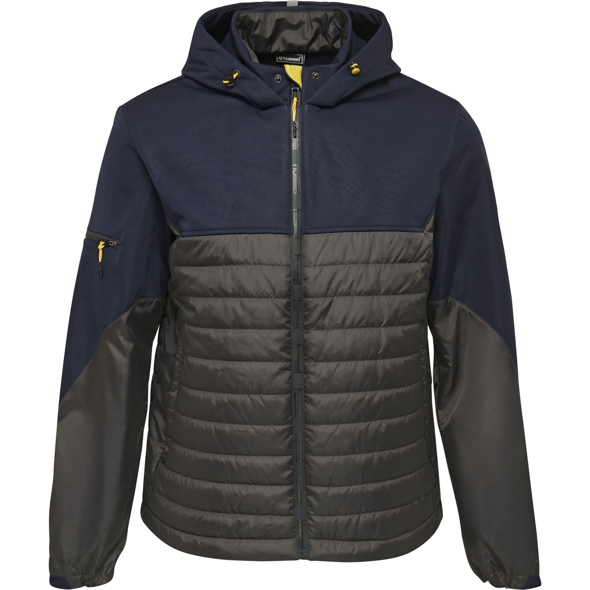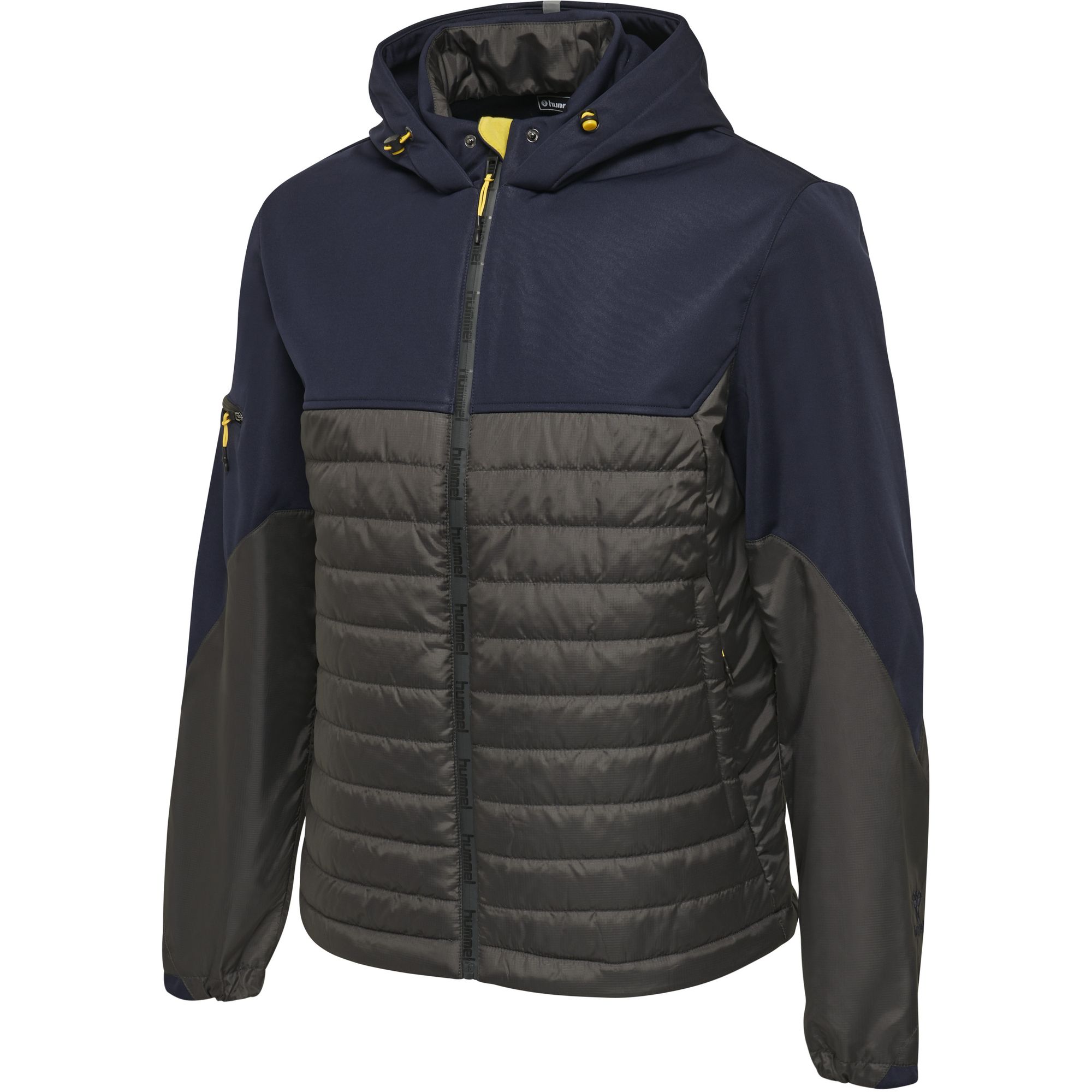 Die Kapuzenjacke hmlNORTH HYBRID JACKET bietet dank des Softshell-Fleeces in der oberen Hälfte und der Steppung an der unteren Hälfte das Beste aus zwei Welten. Der obere Teil bietet die Wasserbeständigkeit WP3000, die perfekt zum Schutz bei leichten Herbstschauern und Schnee geeignet ist. Der untere Saum dieser hummel® Jacke hat einen Kordelzug, mit dem die Passform angepasst werden kann und der Wärme einschließt sowie kalten Wind abhält. Es gibt zwei Außentaschen mit Reißverschluss und eine Innentasche.