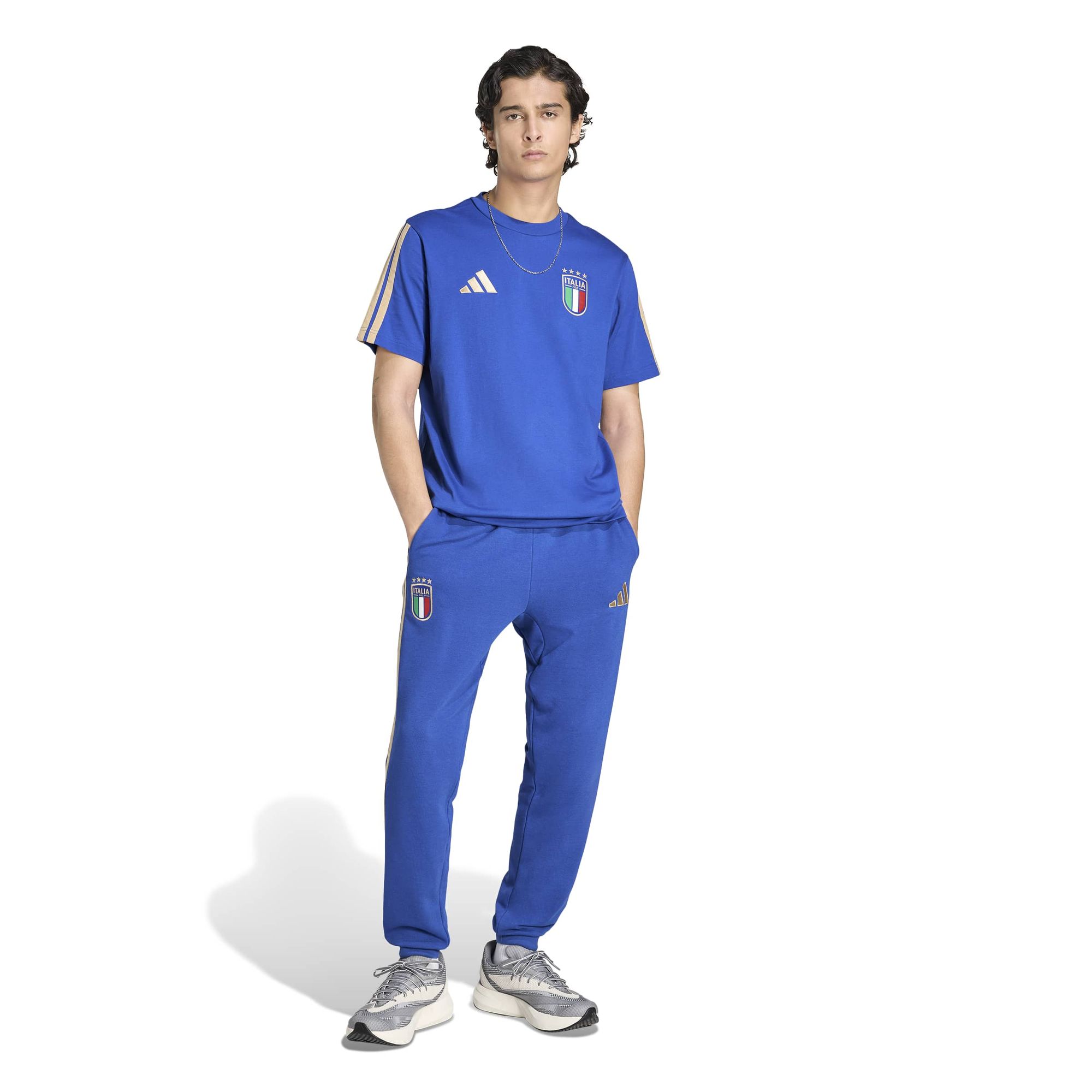 Tauche ein in die Welt der Fußballkultur mit der Italien DNA Hose, bei der modernes Design auf zeitlosen Style trifft. Diese Hose mit überarbeiteter Passform und raffinierten Details verkörpert Fußballtradition pur.