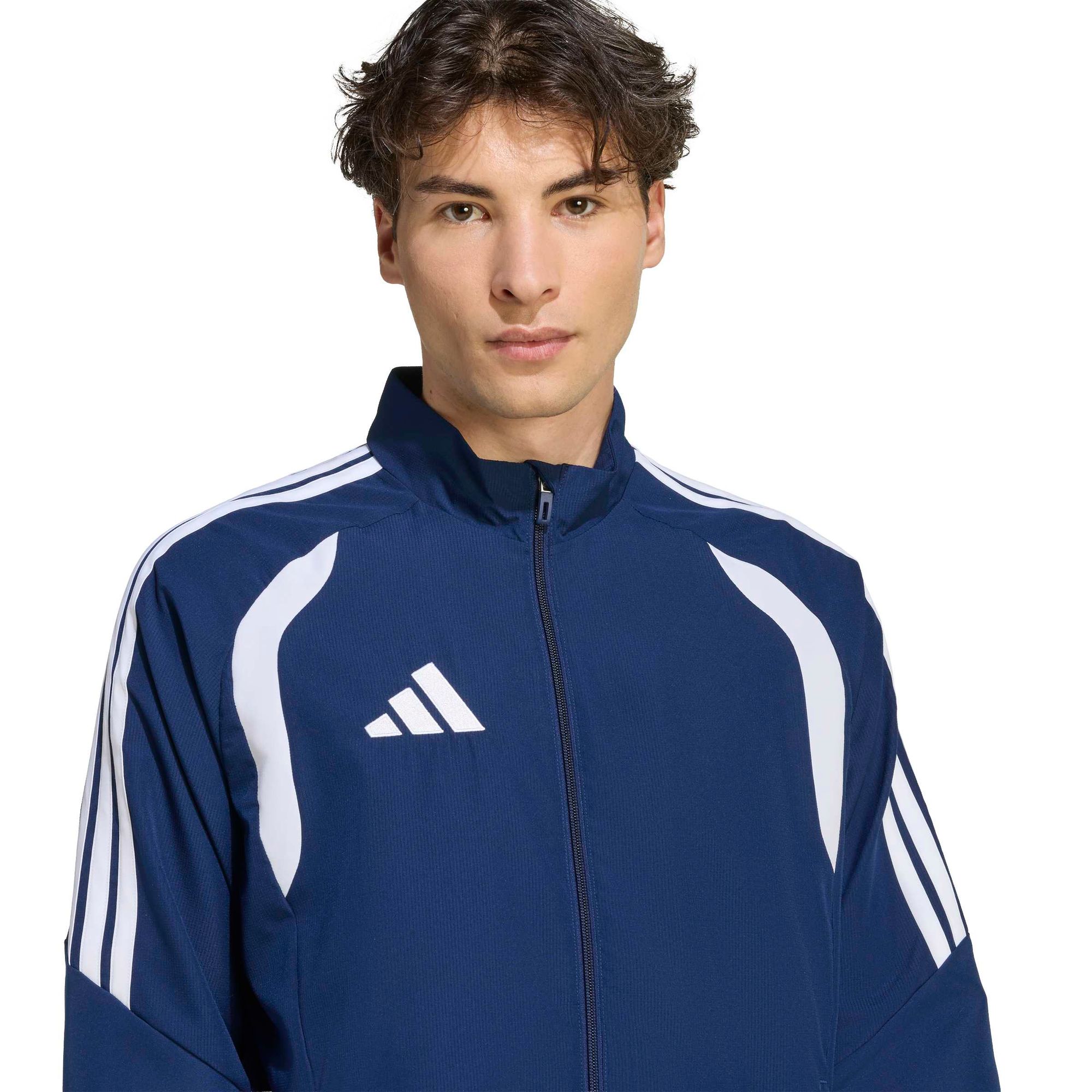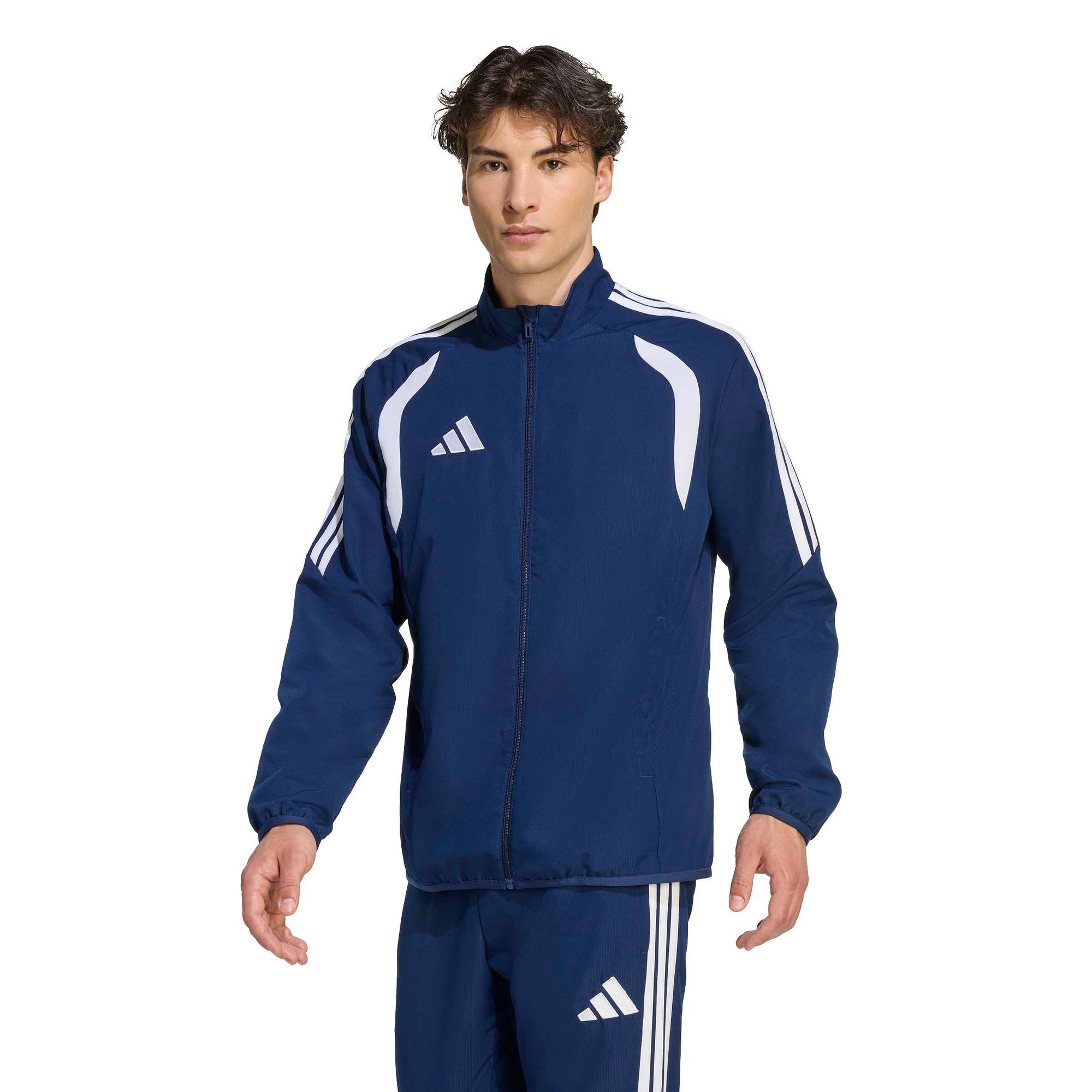Die Tiro26 League Präsentationsjacke ist für alle, die ihre Leidenschaft für Fußball voll ausleben. Sie bietet einen sleeken, professionellen Look, der sich nahtlos vom Spielfeld in den Alltag übertragen lässt.
