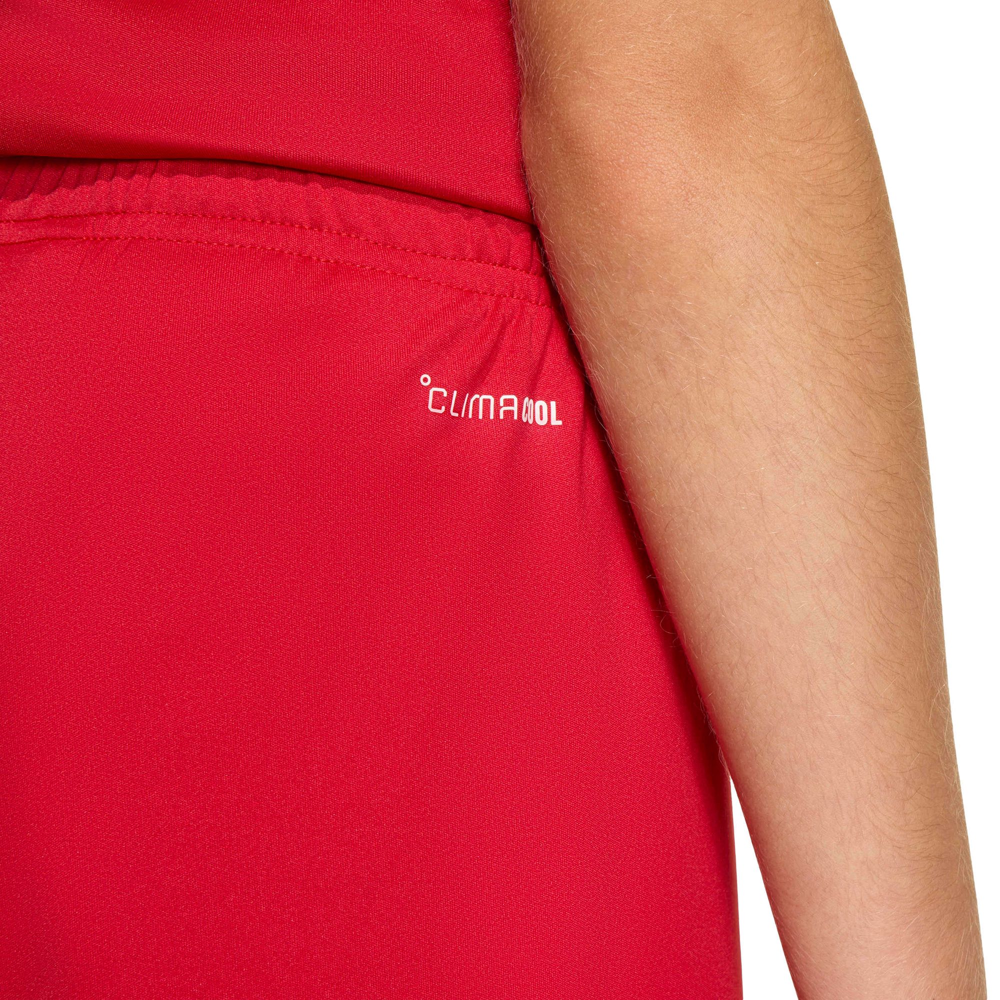 Kühl. Trocken. Bereit. Climacool leitet den Schweiß ab und sorgt für ein kühles, trockenes und ablenkungsfreies Tragegefühl, sodass du auf dem Spielfeld alles geben kannst. Ein Kordelzug im Bund gewährleistet einen passgenauen Sitz, damit die Shorts bei jedem Sprint und Schuss an Ort und Stelle bleiben.