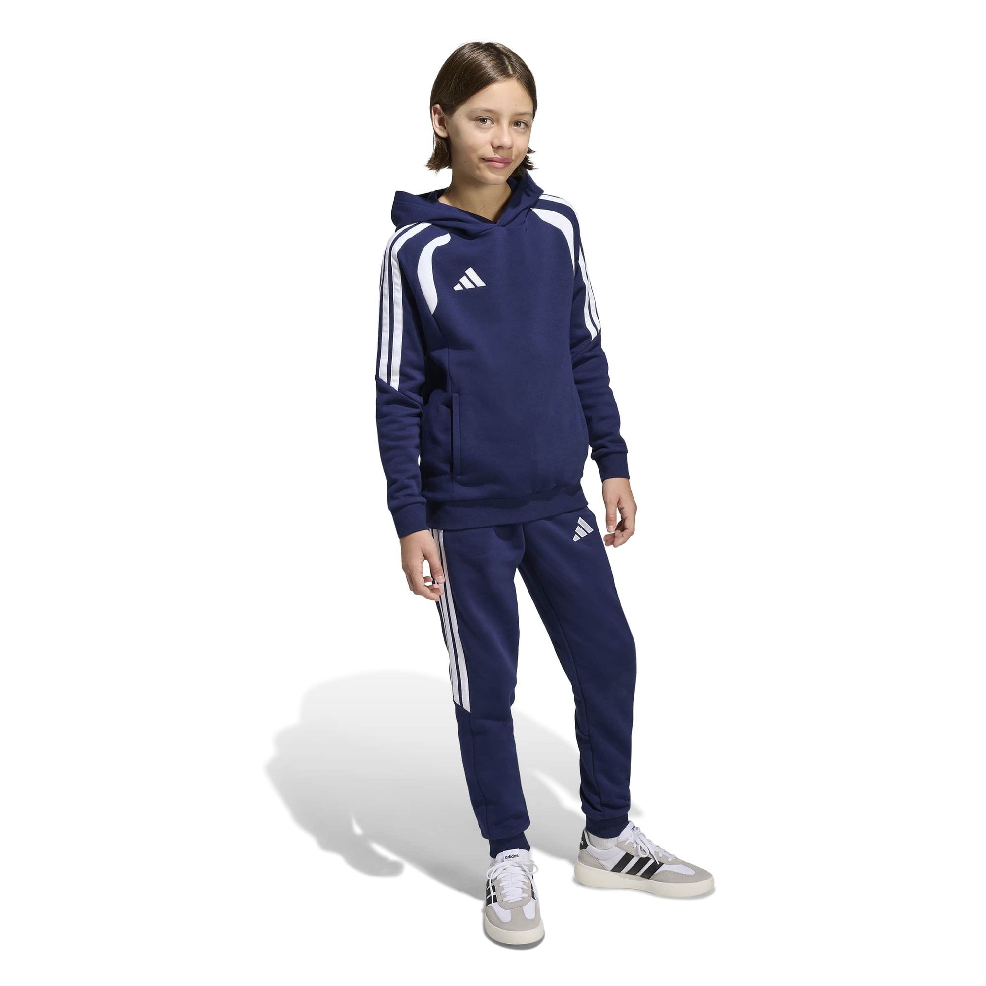 Mit der Tiro26 League Jogginghose für Kinder bringst du die Energie des Spiels in den Alltag. Mit einem mittelhohen Bund und Rippbündchen für einen passgenauen Sitz bieten sie Komfort und Stil für aktive Kinder. Der Kordelzug ermöglicht ein einfaches Anziehen und macht sie zu einer vielseitigen Ergänzung für die Garderobe deines kleinen Sportlers. Mit ihren Reißverschlusstaschen bietet diese Jogginghose praktischen Stauraum für wichtige Kleinigkeiten, damit sich dein Kind voll und ganz auf seine Erkundungstour konzentrieren kann. Die 3-Streifen an jedem Bein und das klassische aufgestickte adidas-Logo sorgen für ein sportliches Flair und machen sie zum idealen Begleiter beim Schulsport oder bei aktiven Abenteuern. Lass dein Kind mit adidas in die Atmosphäre des Fußballs eintauchen, denn hier strotzt jede Naht vor Performance und Style.