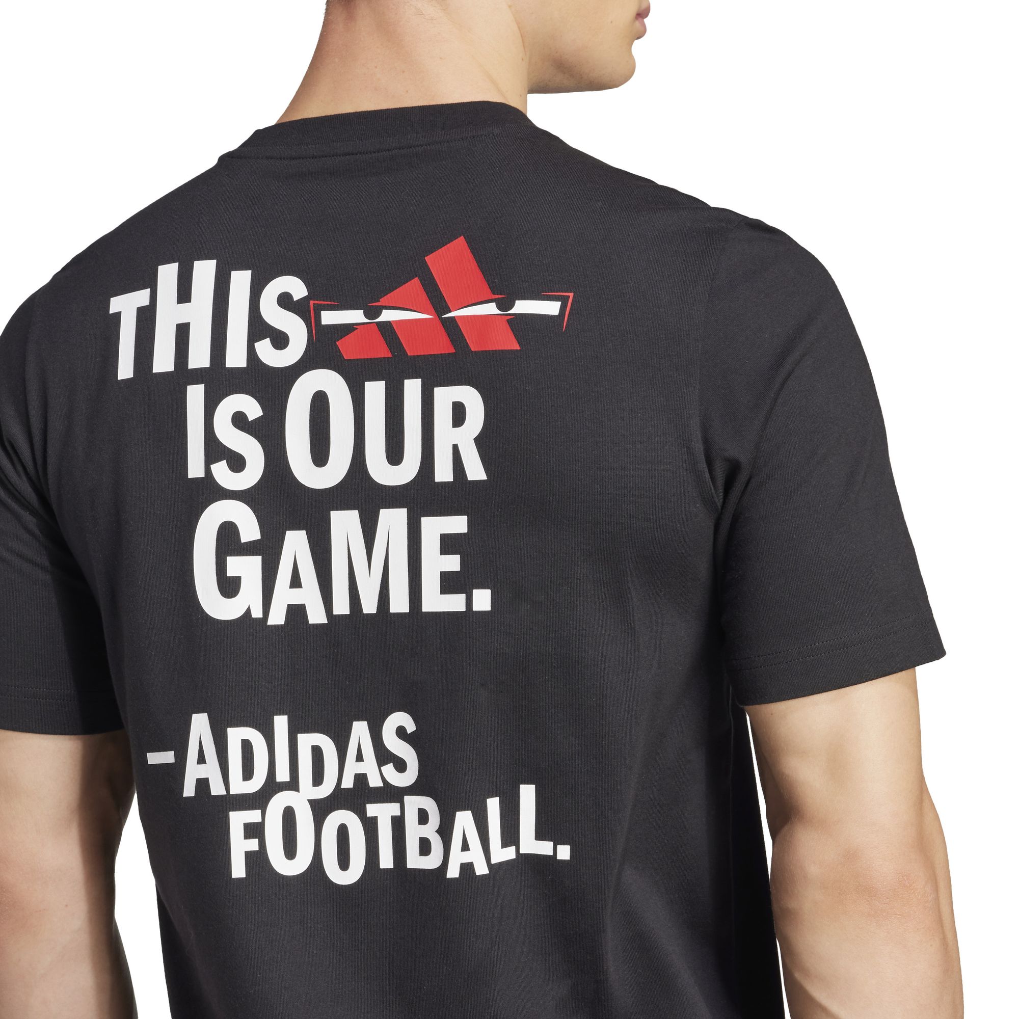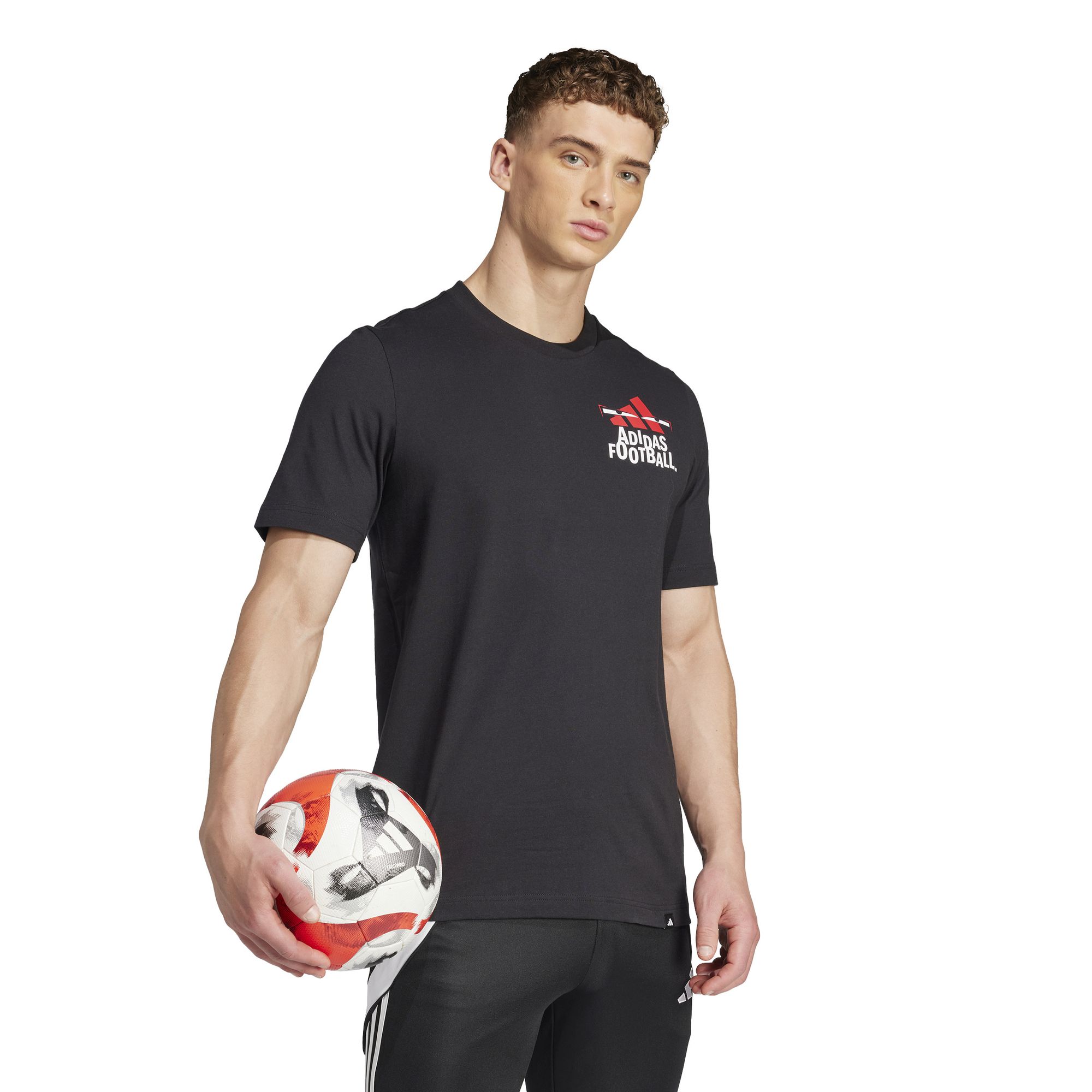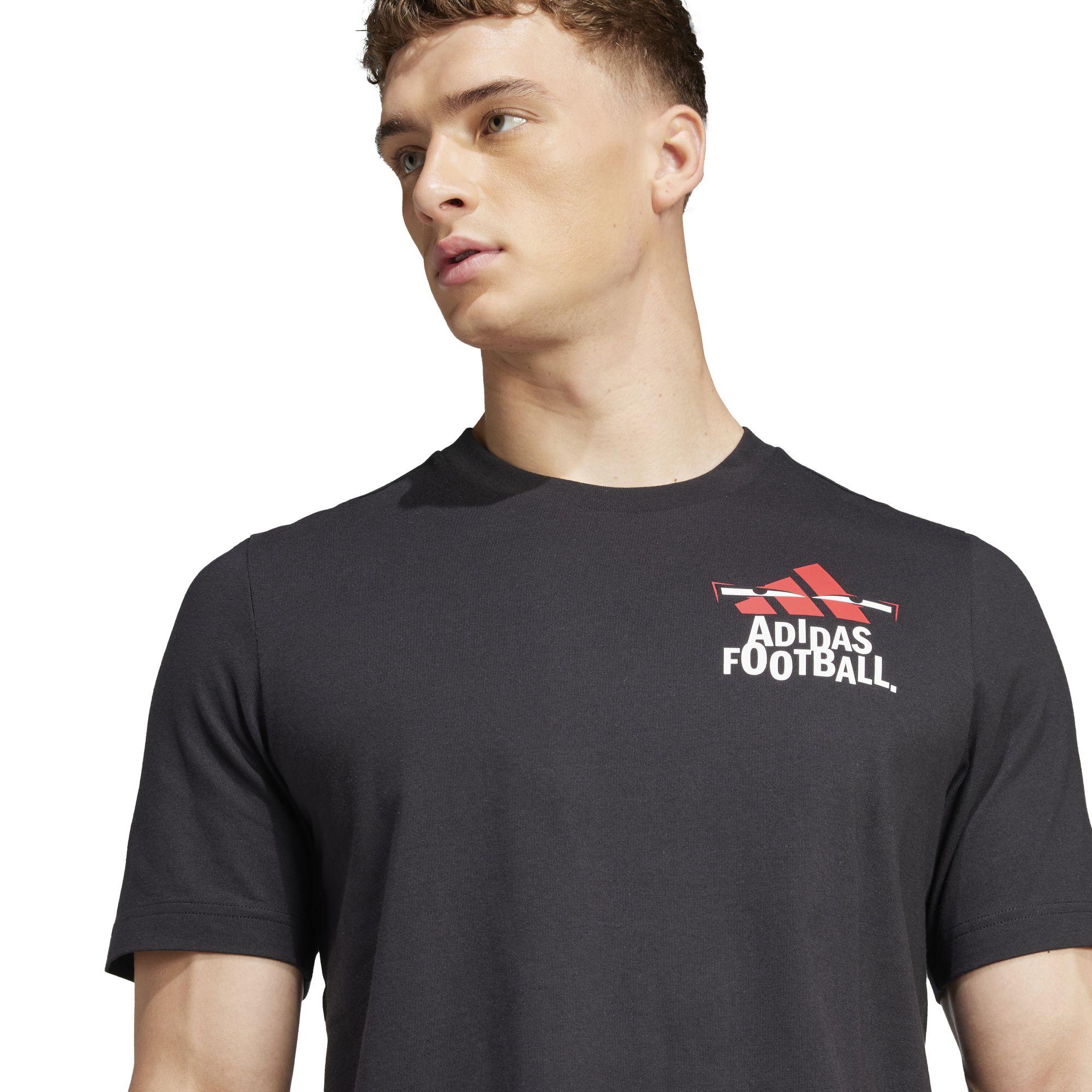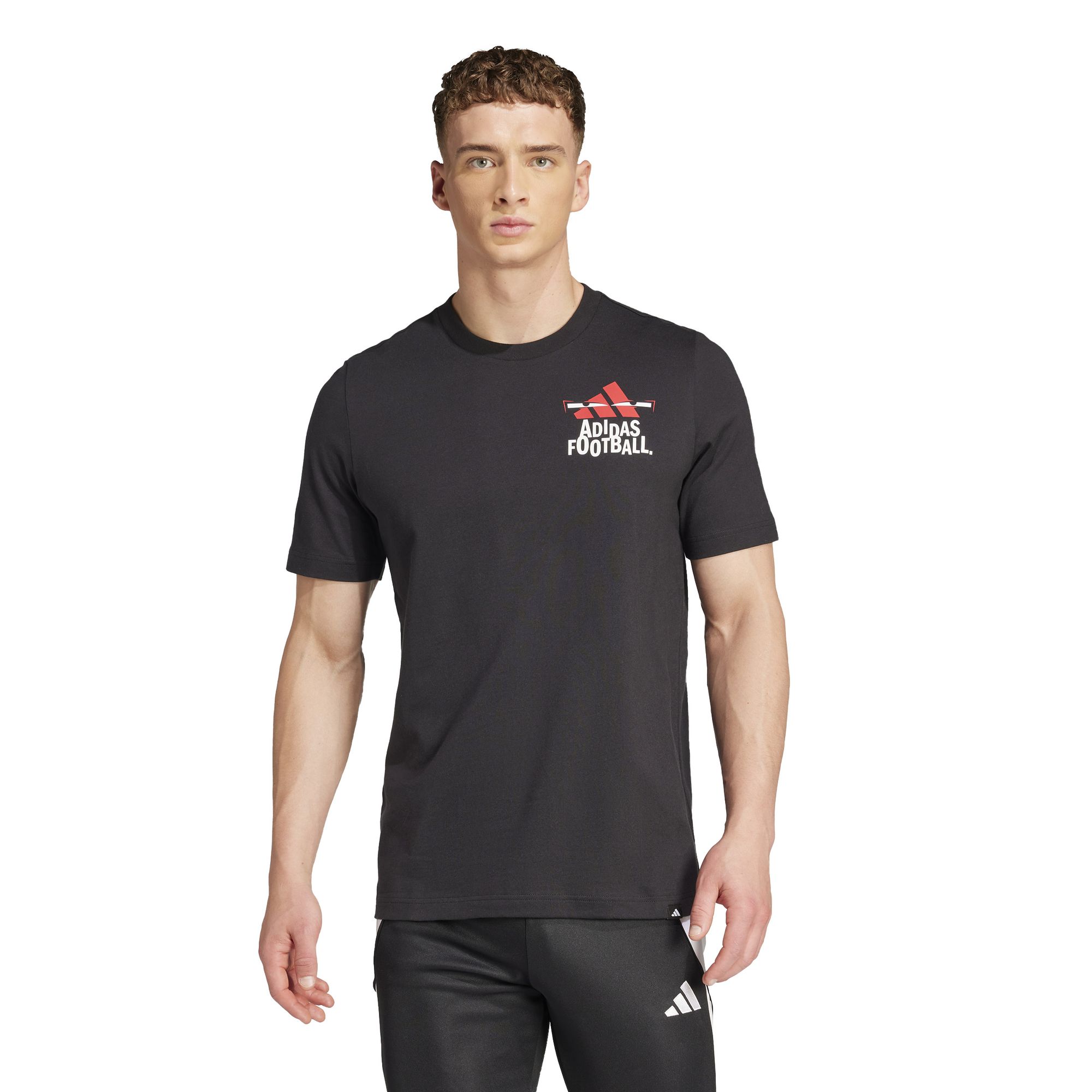 Mit diesem verspielten adidas T-Shirt mit Fußballgrafiken auf der Vorder- und Rückseite zeigst du deine Begeisterung für deinen Lieblingssport. Dank weichem Single Jersey hast du es außerdem angenehm kühl, während du ein Statement setzt.