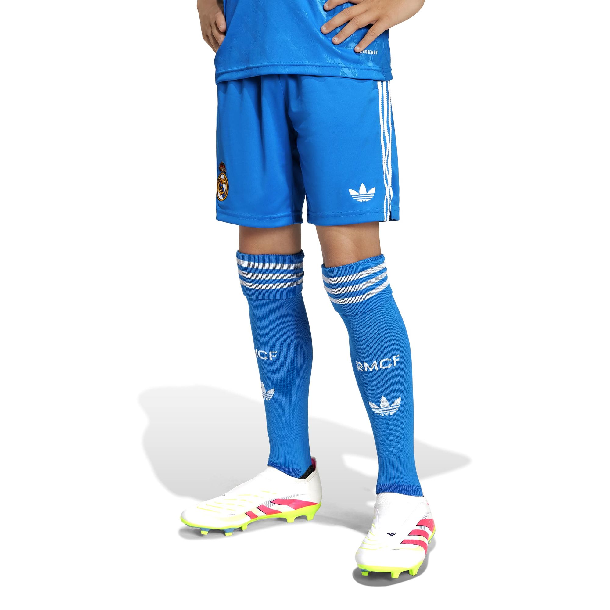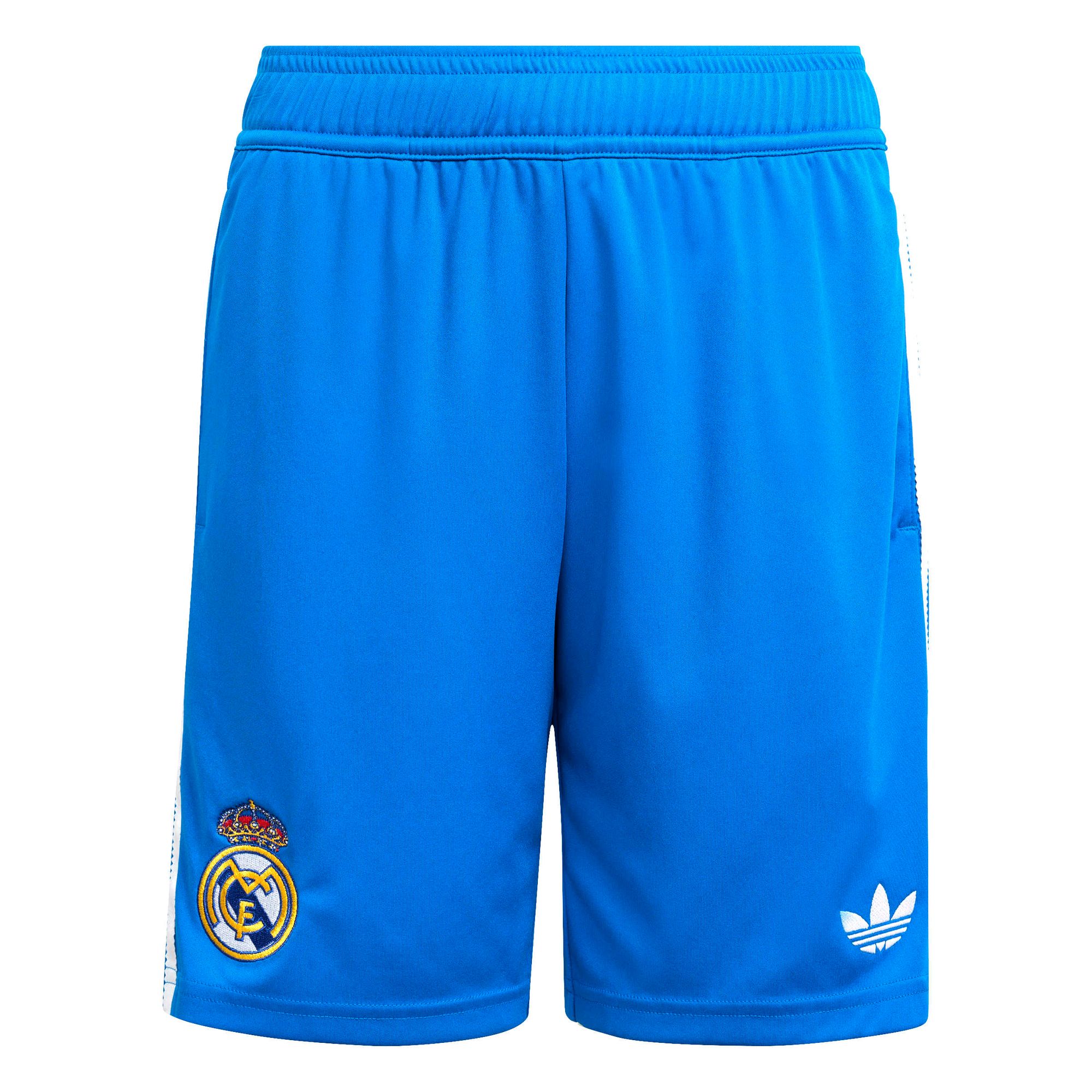 Zeig in diesen Fußballshorts für Kinder und Teens deine Begeisterung für das Team von Real Madrid, was auch immer der Tag dir bringt. Wenn du das in Blau gehaltene Modell anhast, eine Farbe die sowohl bei den Fans des Vereins als auch bei den adidas-Fans gut ankommt, setzt du definitiv ein sportliches Statement. Das feuchtigkeitsregulierende AEROREADY sorgt für ein angenehmes Tragegefühl und das aufgestickte Trefoil verleiht dir das perfekte Retro-Finish.