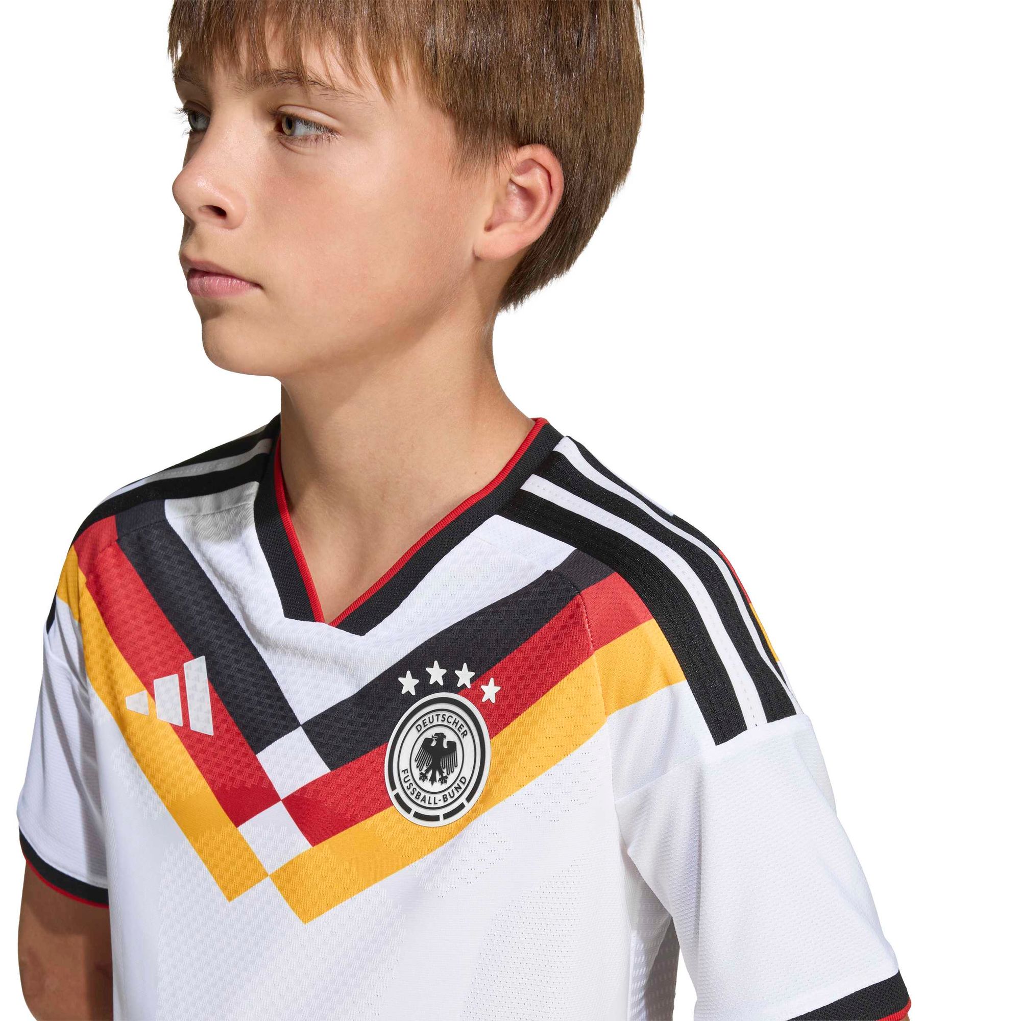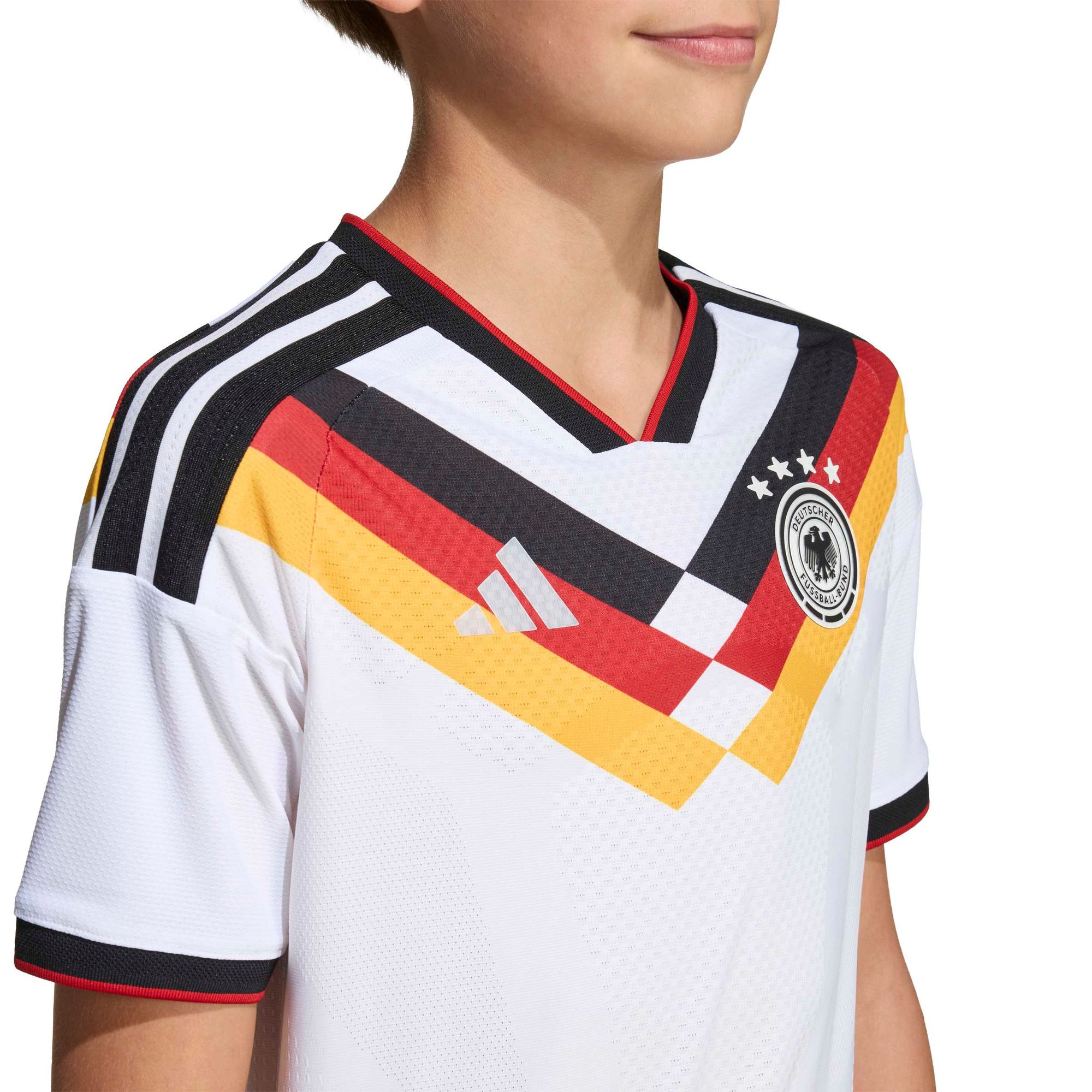 Mit dem adidas Logo und dem DFB-Branding ist dieses Trikot ein Symbol für den Stolz auf die Nationalmannschaft und ihre sportlichen Höchstleistungen. Regulär geschnitten, sitzt es weder zu eng noch zu locker und sorgt für ein ausgewogenes Tragegefühl, damit sich dein Kind auf dem Spielfeld frei und uneingeschränkt bewegen kann.