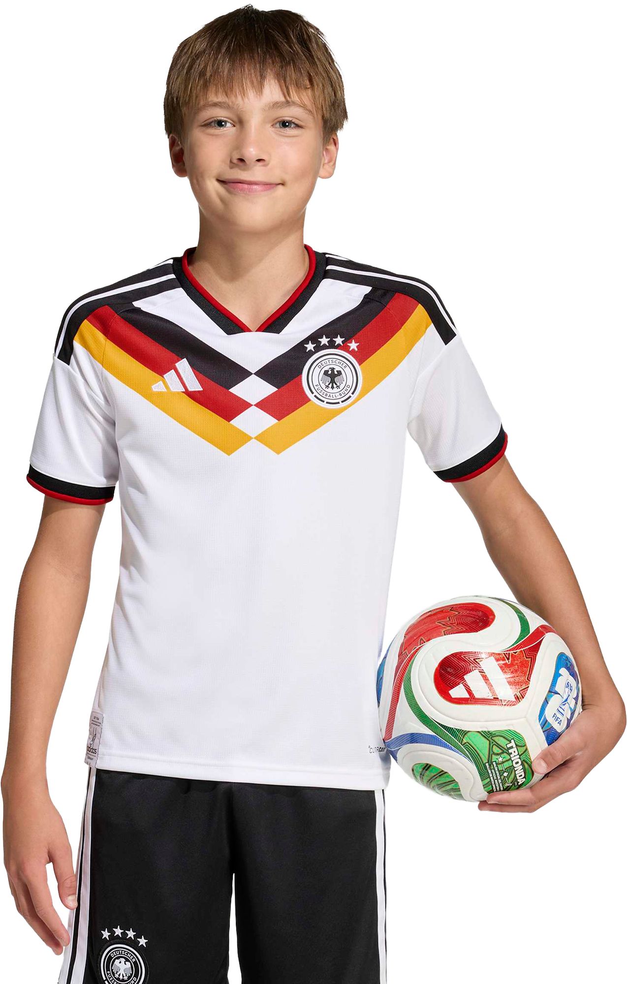 Das Deutschland 26 Heimtrikot wurde für junge Fußballfans entworfen, die ihren Helden auf dem Platz nacheifern möchten. Dieses Trikot kombiniert die Essenz unvergesslicher Momente mit modernster Technologie, damit sie sowohl mit ihrem Style als auch mit ihrer Leistung herausstechen können. Die integrierte Climacool Technologie leitet Schweiß ab und sorgt für ein kühles, trockenes und ablenkungsfreies Tragegefühl. Die reguläre Passform bietet genügend Bewegungsfreiheit, damit die Spielerinnen und Spieler auch bei intensiven Matches konzentriert bleiben. Die Doppelstrick-Konstruktion ist strapazierfähig und dabei gleichzeitig weich, was das Oberteil zu einer guten Wahl für den Alltag macht. Und mit dem adidas Logo und dem Vereinslogo, die nicht zu übersehen sind, fühlt sich dein Kind wie ein Teil des Teams. Mit diesem Trikot, das Tradition und Geschichte mit Innovation vereint, fühlt dein Kind sich als Teil des Teams. Denn es geht um mehr als Kleidung. Es geht um einen Lifestyle.