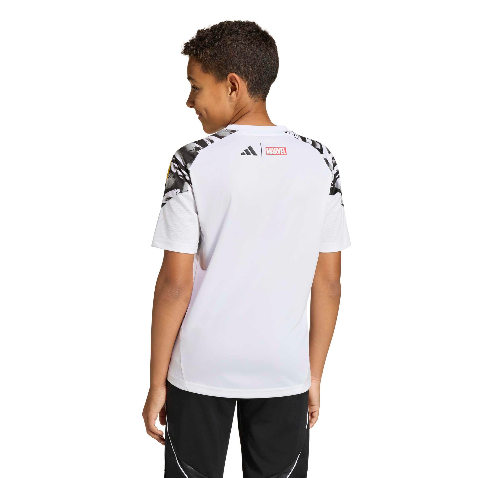 Trainiere deine Fußball-Superkräfte in diesem adidas Real Madrid Avengers 25/26 Tiro25 Competition Trainingstrikot. Mit seinem von den Marvel Avengers inspirierten Design setzt es auf dem Spielfeld garantiert ein Statement.
