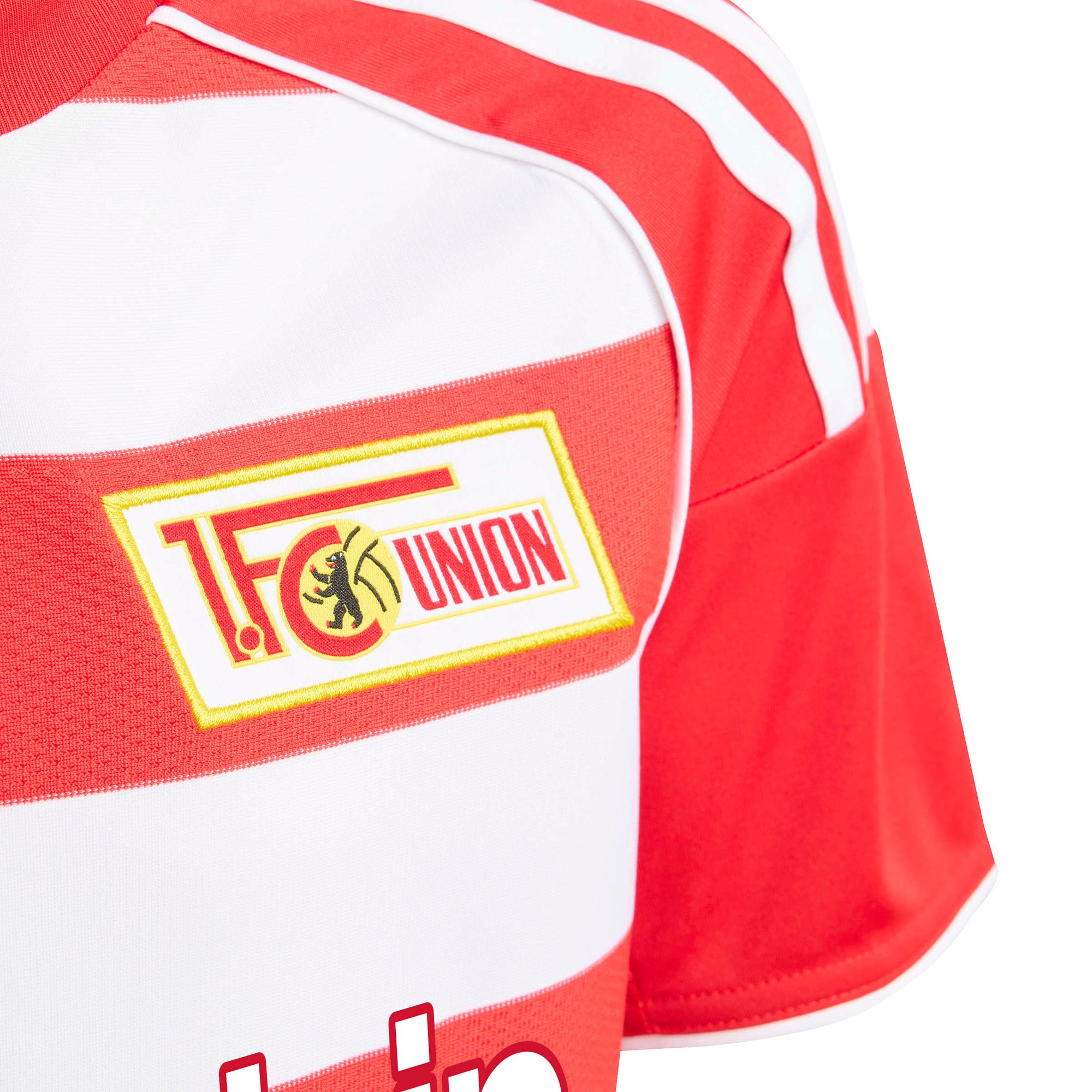 Inspiriert von den Fahnen, die das Stadion An der Alten Försterei zieren, zieht dieses Heimtrikot für Kinder und Teens des 1. FC Union Berlin mit horizontalen rot-weißen Streifen die Blicke auf sich. Die feuchtigkeitsabsorbierende AEROREADY Technologie sorgt für ein angenehm trockenes Tragegefühl auf dem Platz oder den Stadionrängen. Das Verbandslogo auf der Brust zeigt außerdem deine Fanliebe.