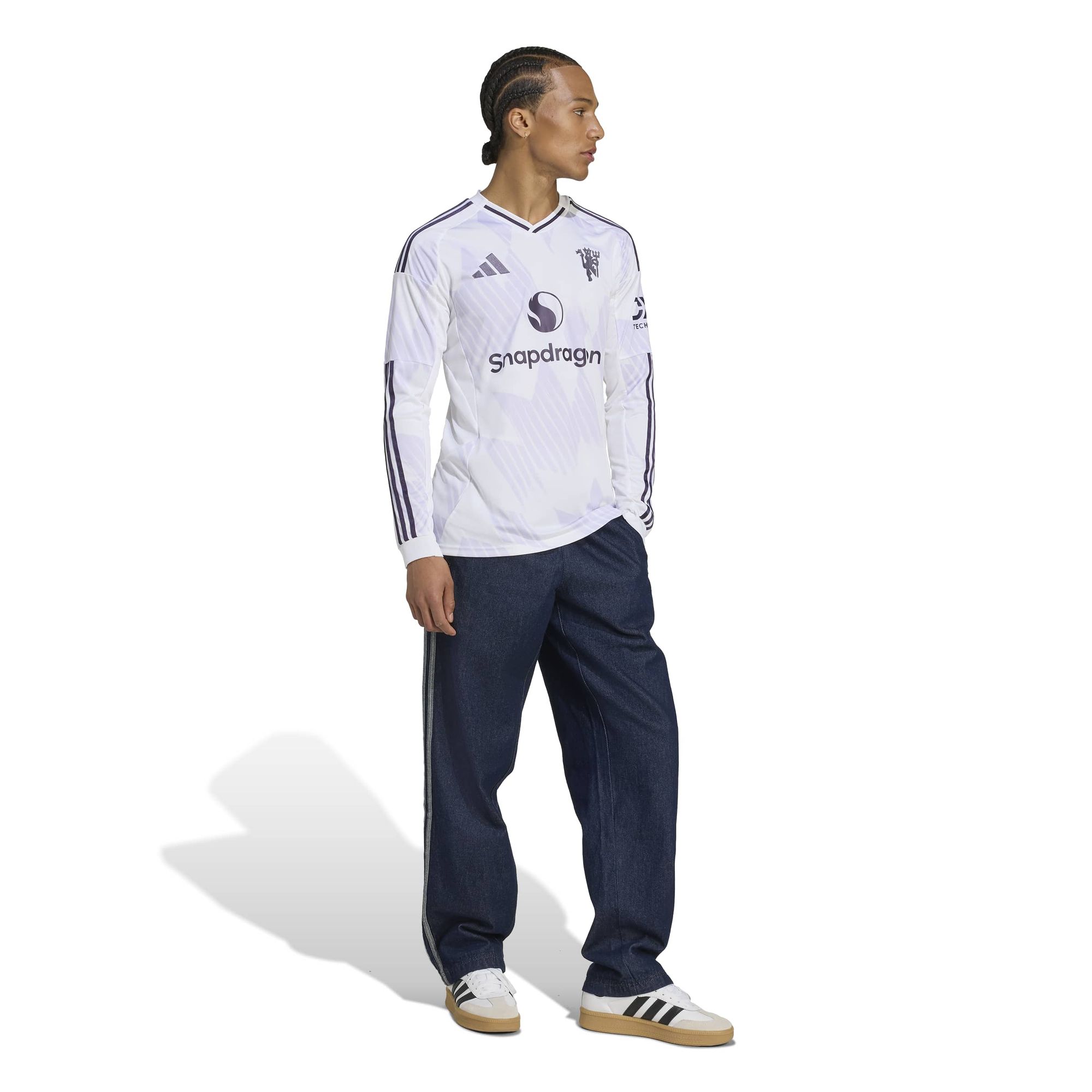 Der coole Stil von Manchester United bekommt einen neuen Look. Fans werden schnell die adidas Schneeflocken aus den frühen 90er Jahren auf diesem Trikot wiedererkennen. Neu sind jedoch die violetten und fliederfarbenen Farbtupfer und das Metallic-Finish, das dem roten Teufelslogo zusätzlichen Glanz verleiht. Dieses bequeme Langarmshirt ist mit feuchtigkeitsregulierendem AEROREADY ausgestattet, damit sich die Fans auf das Fußballspiel konzentrieren können.