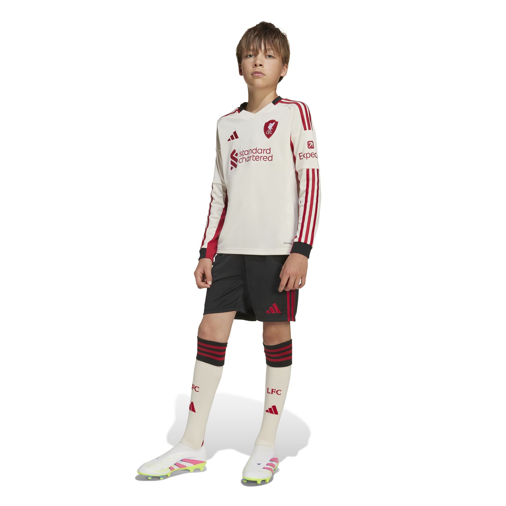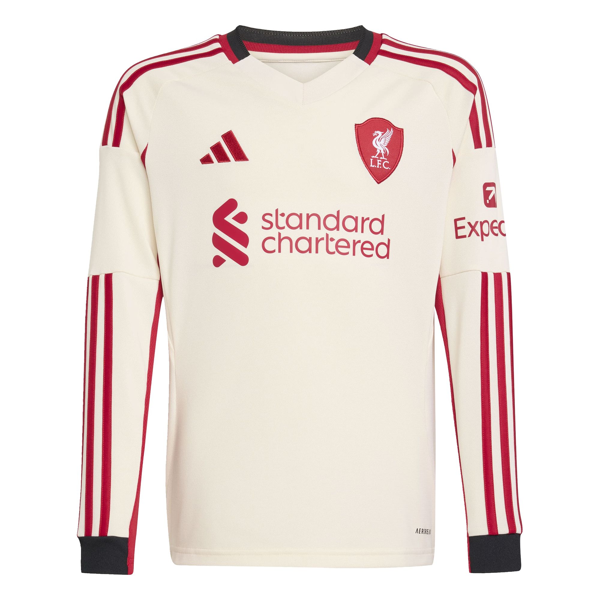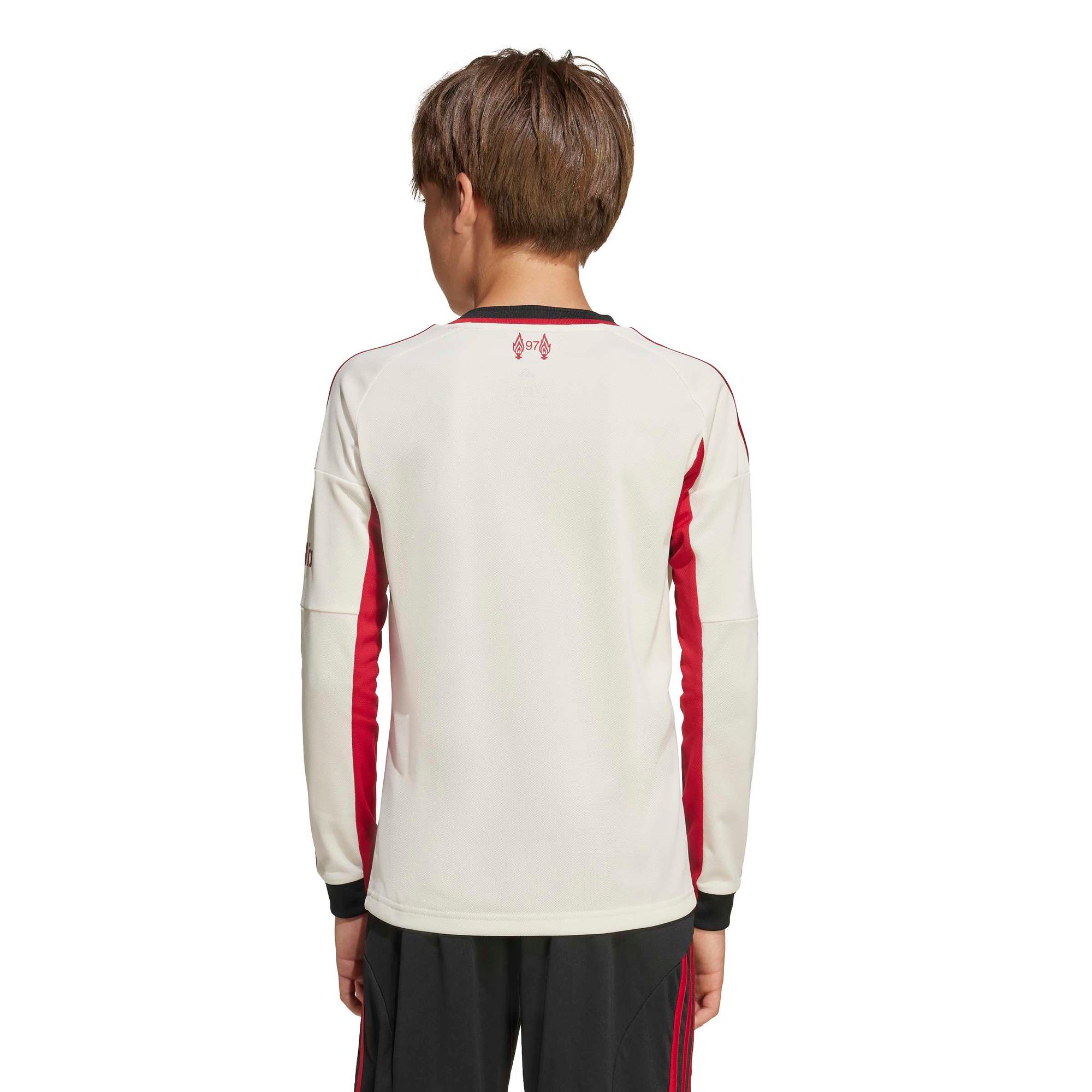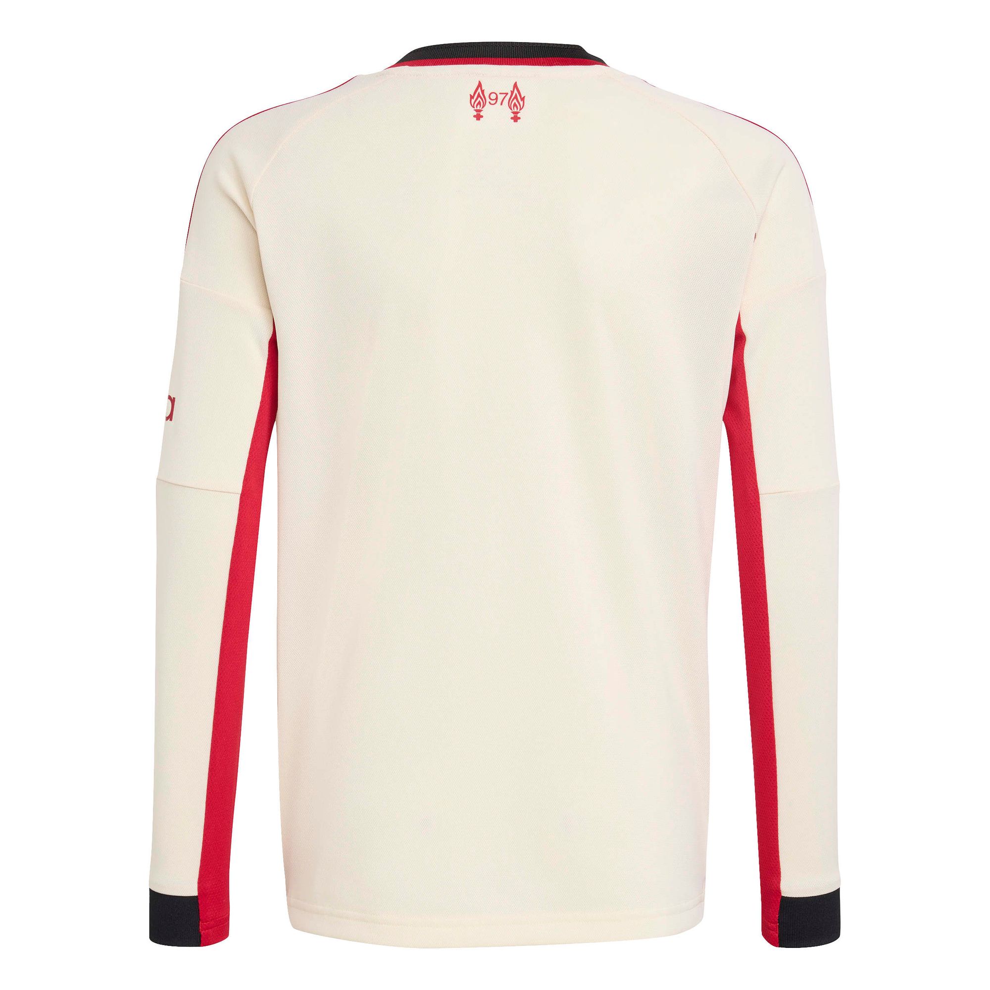 In der Saison 25/26 ist Anfield überall. Dieses adidas Fußballtrikot für Kinder und Teens von adidas repräsentiert an Auswärtsspieltagen das ikonische Heimstadion des FC Liverpool und zeigt ein spezielles Vereinslogo, dessen Form vom gewölbten Giebel der alten Haupttribüne des Stadions inspiriert wurde. Das feuchtigkeitsregulierende AEROREADY und das weiche Material sorgen für einen hohen Tragekomfort beim Auswärtsspiel. Der Farbton Offwhite wird dir als Red, der die Geschichte seines Vereins kennt, vertraut sein.