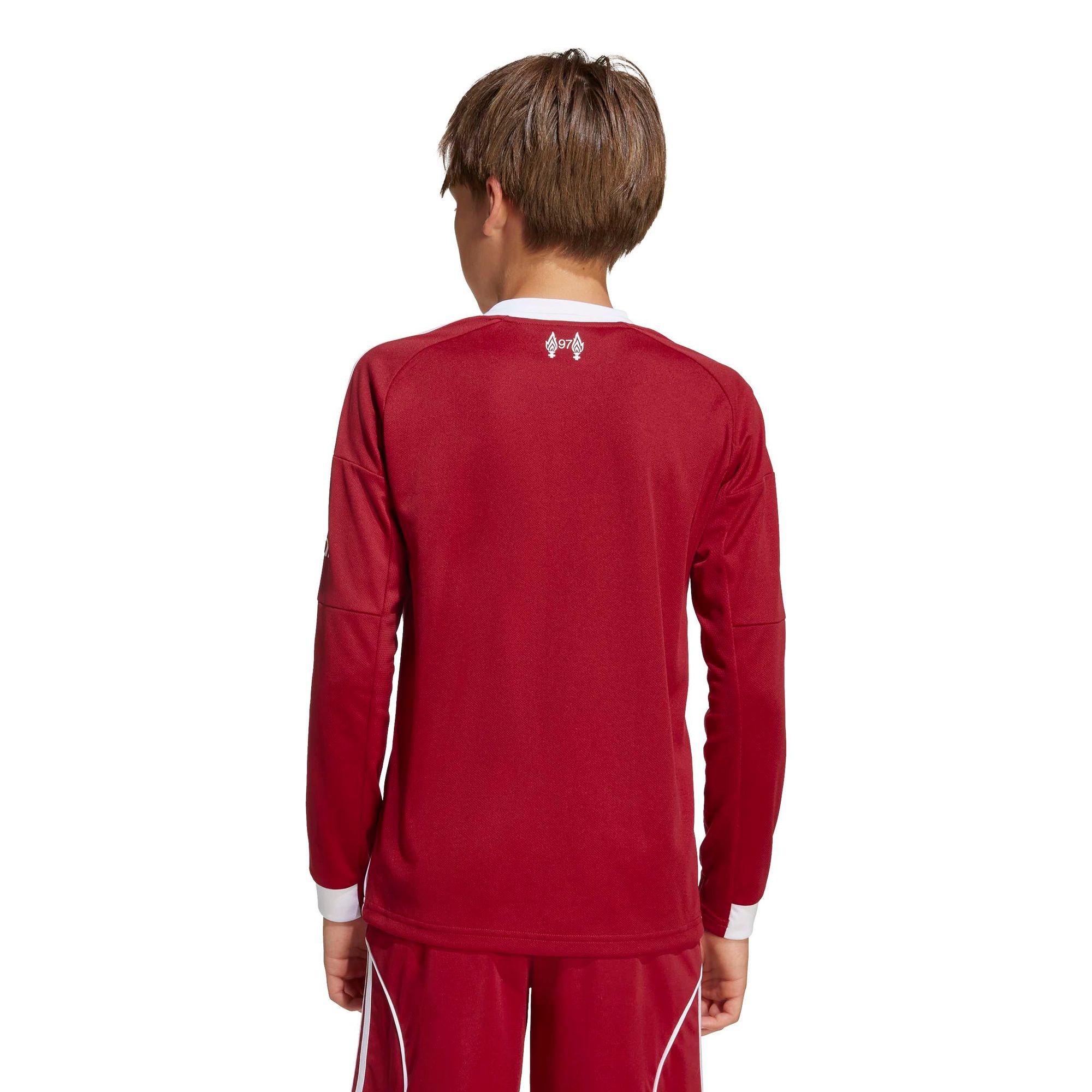 Welcome home, Reds! Der FC Liverpool und adidas sind schon immer das perfekte Team gewesen. Dieses langärmelige Heimtrikot für Kinder und Teens, das die dritte Kollaboration einläutet, vereint echte Fußball-Vibes der 00er Jahre mit einem cleanen, klaren Look und weißer Paspelierung. Das feuchtigkeitsregulierende AEROREADY sorgt für angenehmen Tragekomfort, während der Liver Bird auf der Brust die Verbundenheit zum Team zeigt, die Hoffnung im Herzen, ein Lied auf den Lippen.