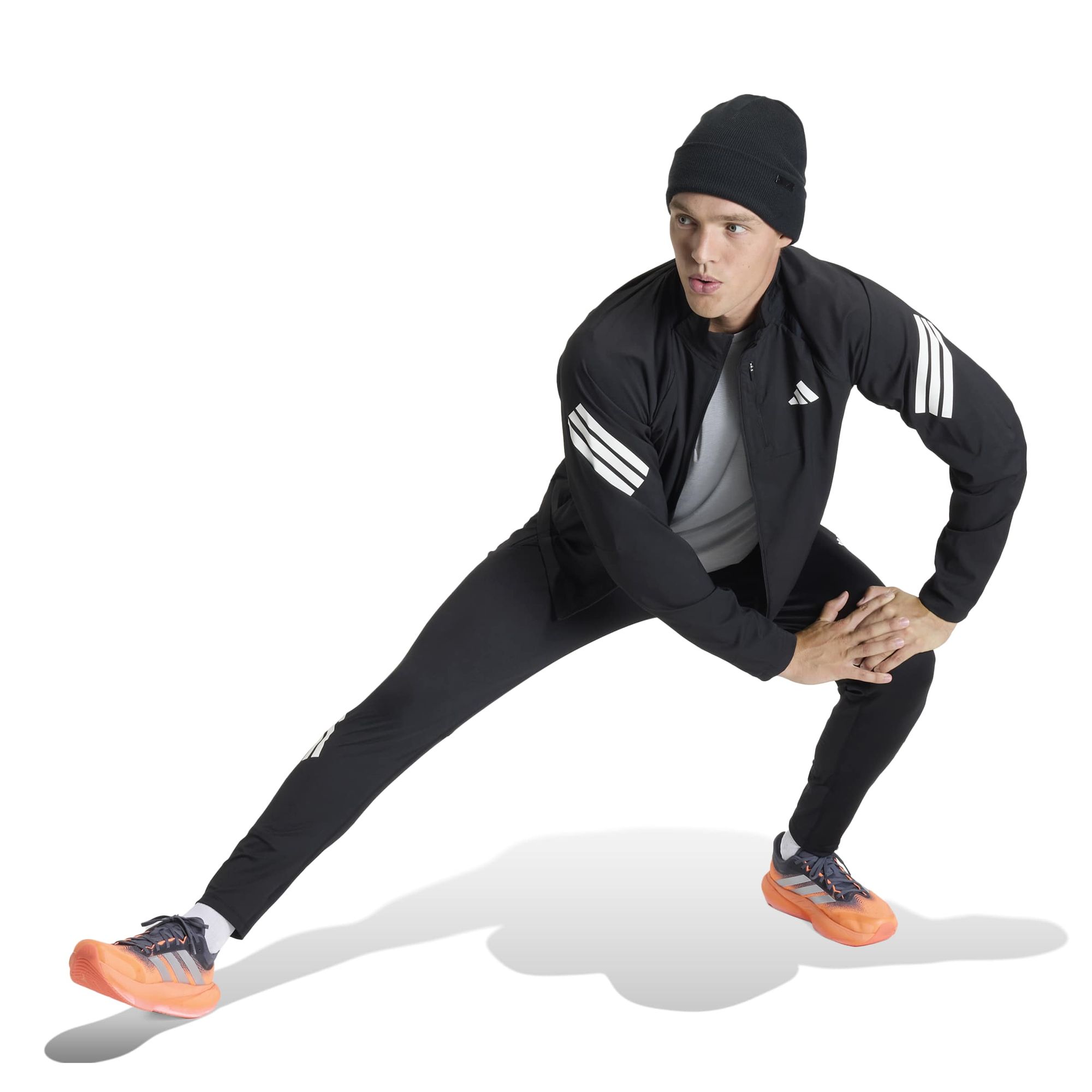 Die Jacke hat ein reflektierendes Performance Logo und ein schräges 3-Streifen Branding, damit du mit dem charakteristischen adidas Look auffällst. Die Mesh-Einsätze schenken Atmungsaktivität sorgen dafür, dass das Oberteil bei deinen Läufen kühl und bequem bleibt. Über die Bungee-Schnürung am Saum kannst du die Passform nach Belieben einstellen.