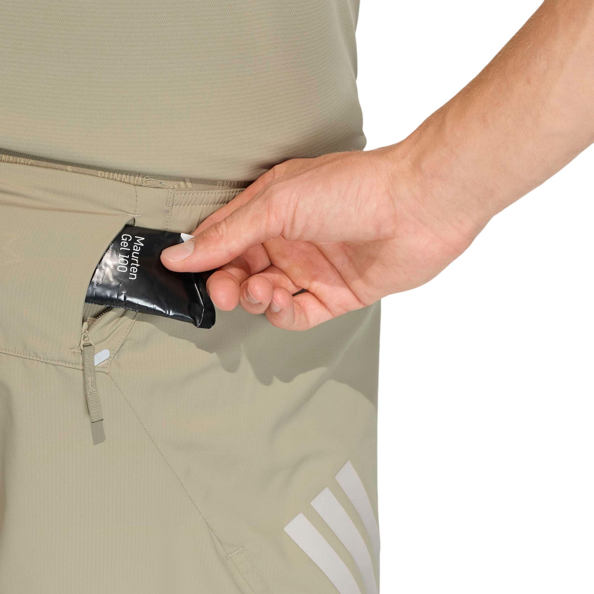 Sowohl die strapazierfähige Ripstop-Außenshorts als auch die weiche integrierte Leggings aus Single Jersey haben Taschen, in denen du dein Handy und andere Wertsachen von den Energiegels und Snacks trennen kannst.