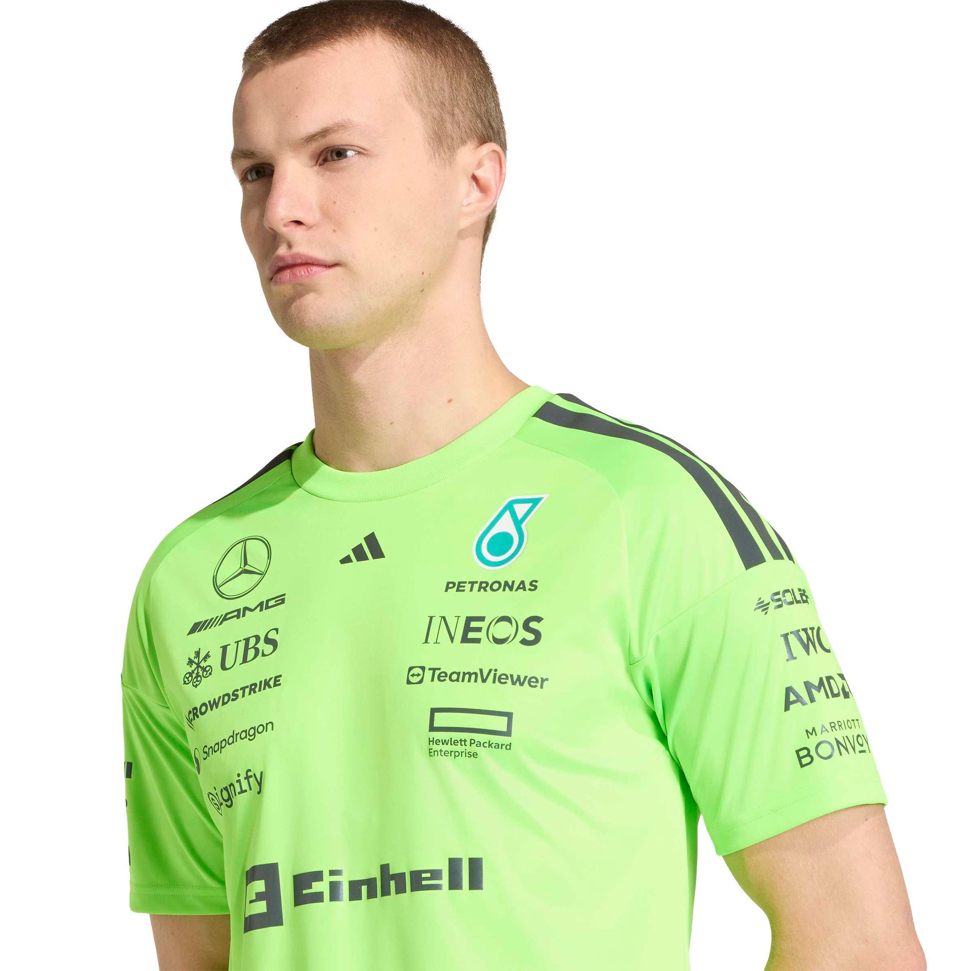 Feiere die Welt des Motorsports mit dem Mercedes-AMG Petronas Formula 1 Team Setup T-Shirt. Alle, die auf der Überholspur leben, setzen mit diesem T-Shirt ein Statement in Sachen Leistung und Style.