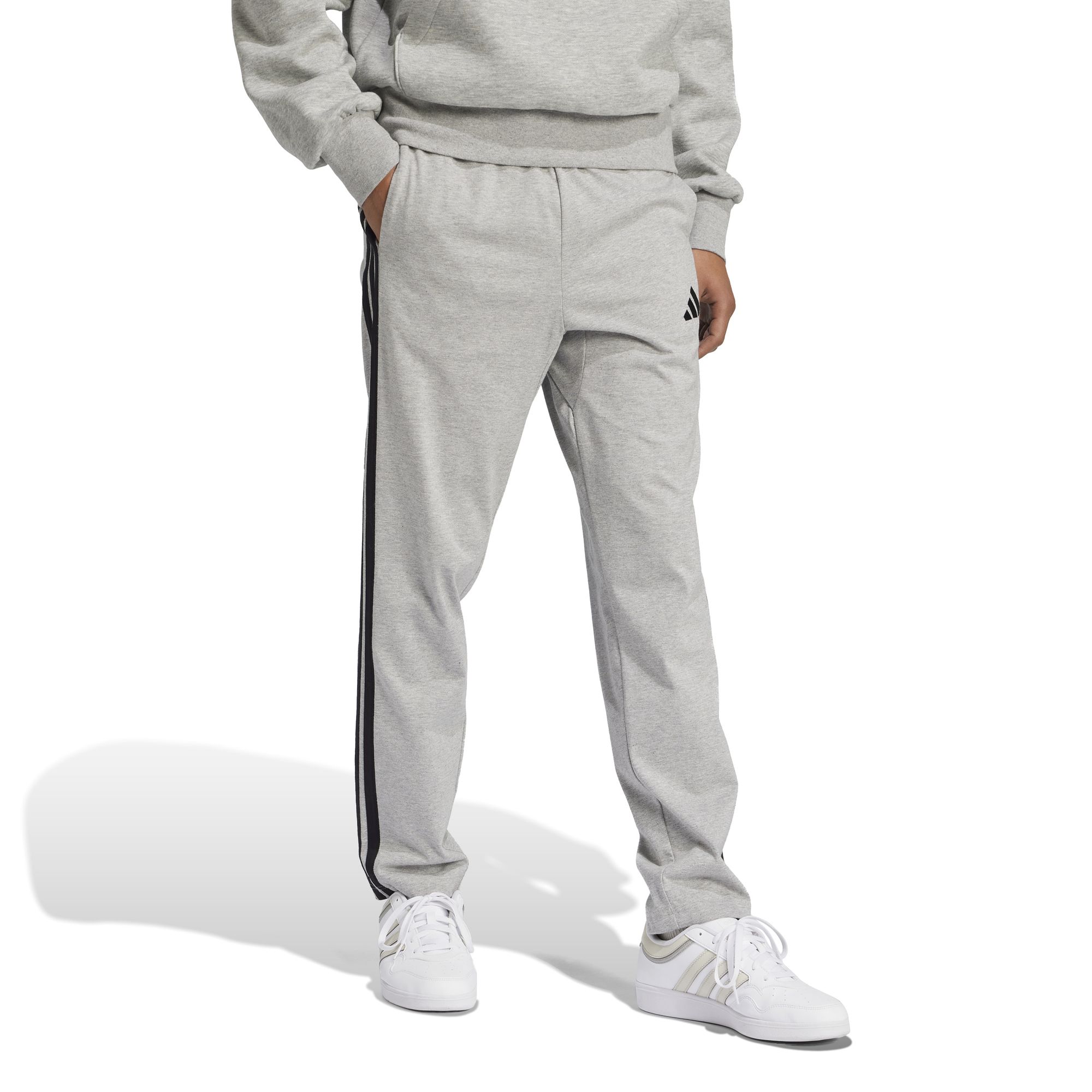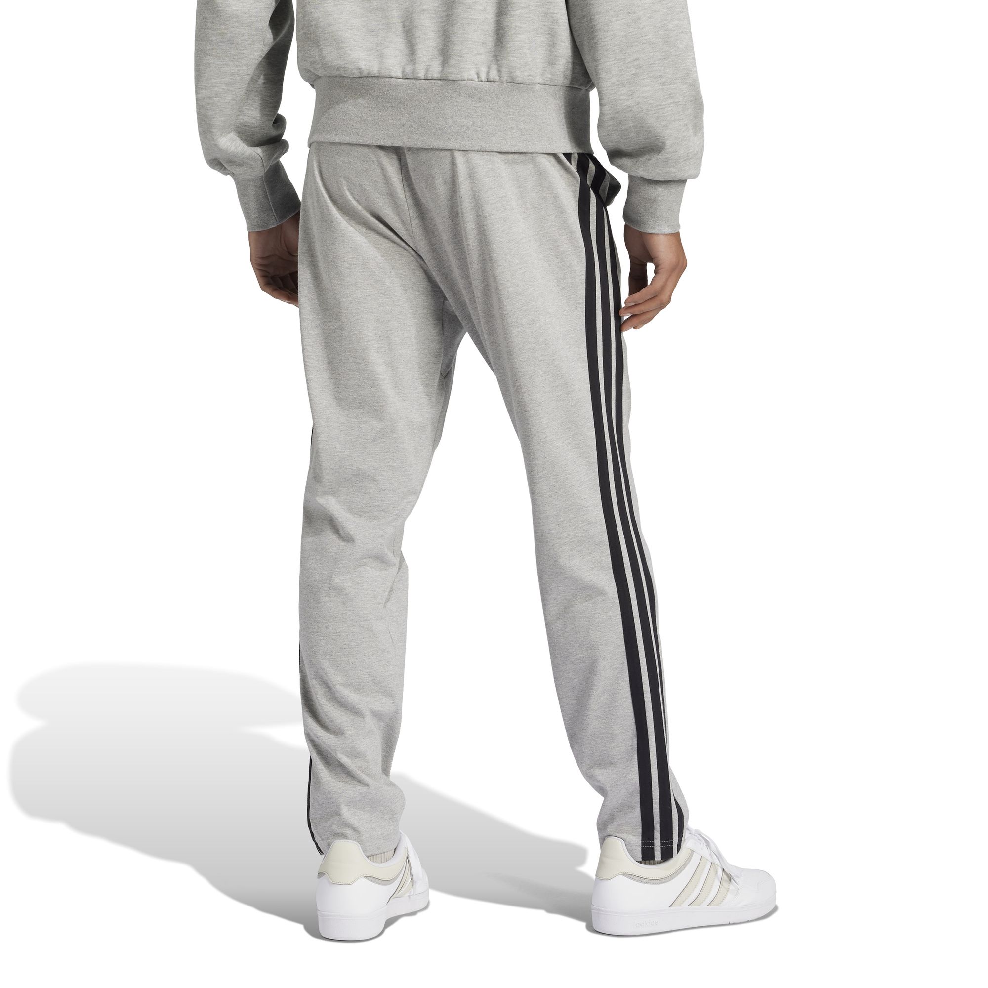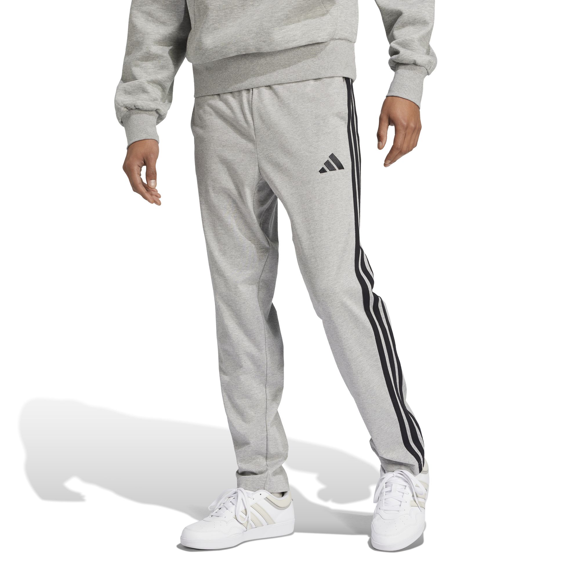 Bei dieser adidas Hose trifft lässiger Style auf ein cleanes, modernes Design. Sie ist aus weichem, leichtem Single Jersey und damit perfekt für entspannte Tage und relaxte Abende. Das aufgestickte 3-Streifen Logo und die 3-Streifen entlang der Beine verpassen dem Piece einen klassischen, sportlichen Look.