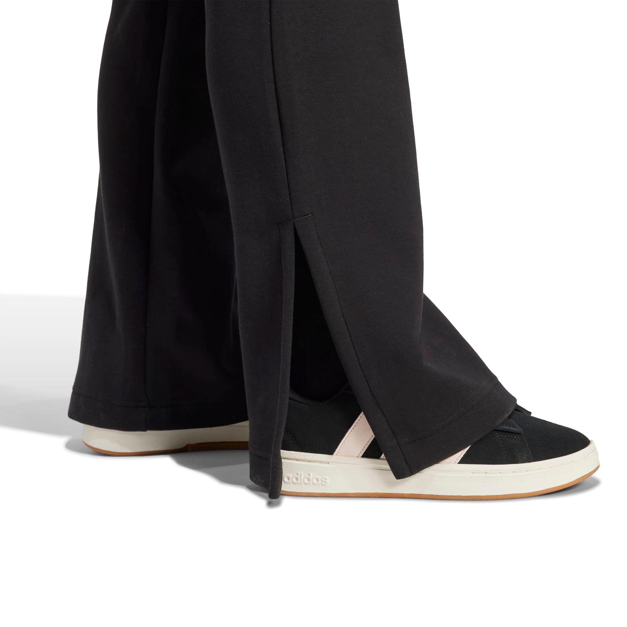 Diese ausgestellte adidas Hose ist dein Favorit für lässigen Luxus. Das weiche, angeraute Material ist angenehm beim Tragen. Die schlanke Passform, der mittelhohe Bund und die ausgestellten Säume schaffen eine schmeichelhafte Silhouette. Der Gummizug sorgt für den perfekten Sitz und die seitlichen Schlitze setzen stylishe Akzente.