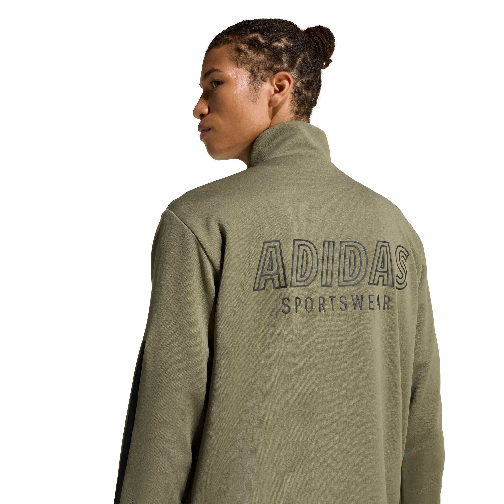 Dieses adidas Track Top verpasst deinem Alltagslook einen edgy Vibe. Die feuchtigkeitsabsorbierende AEROREADY Technologie garantiert dir ein angenehm trockenes Tragegefühl auf der Tribüne oder beim Kicken mit Freund_innen. Ein großes Logo auf der Rückseite zeigt außerdem deine Begeisterung für adidas.