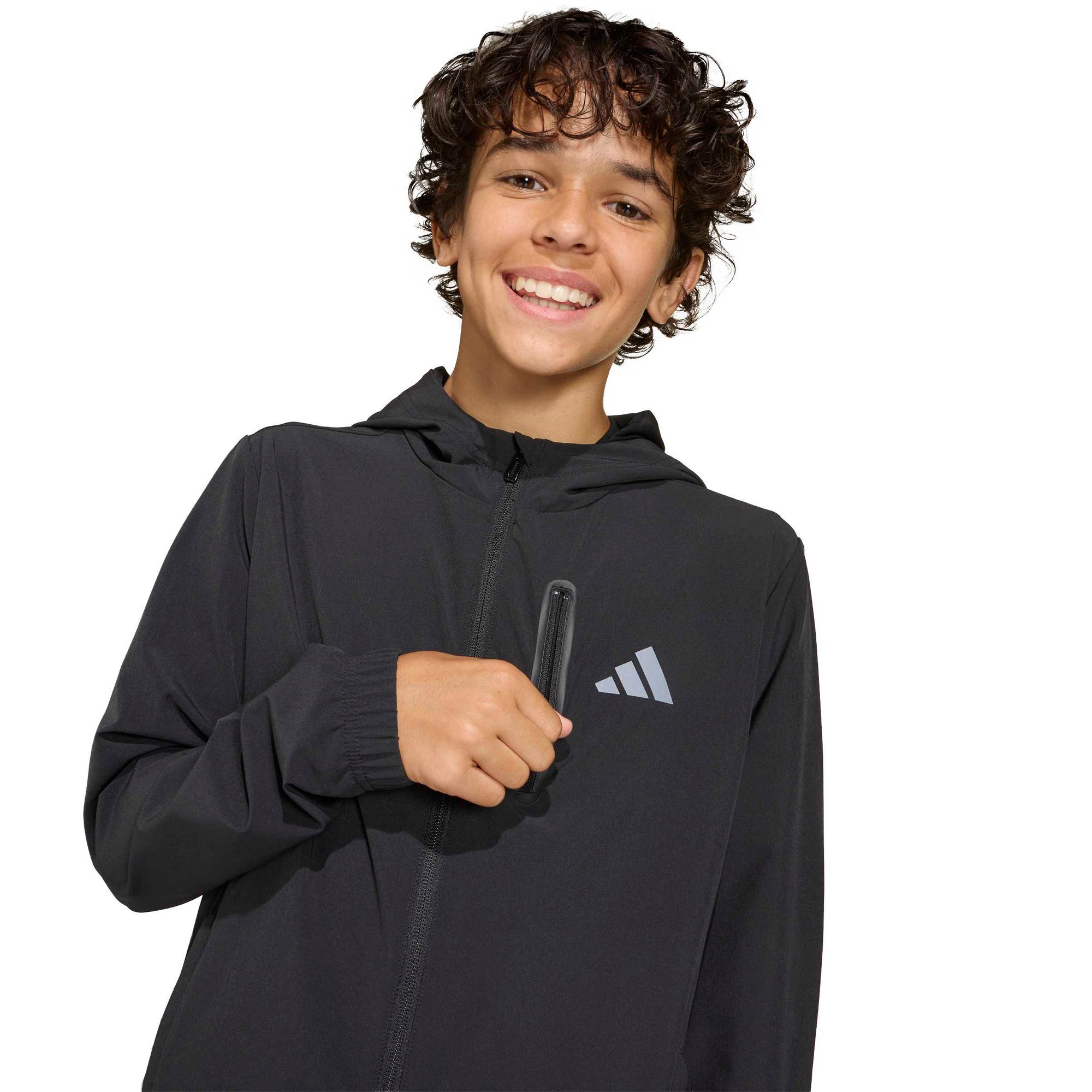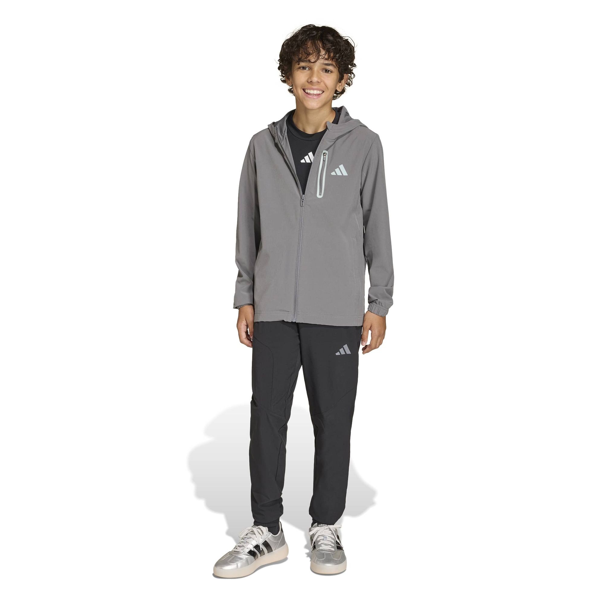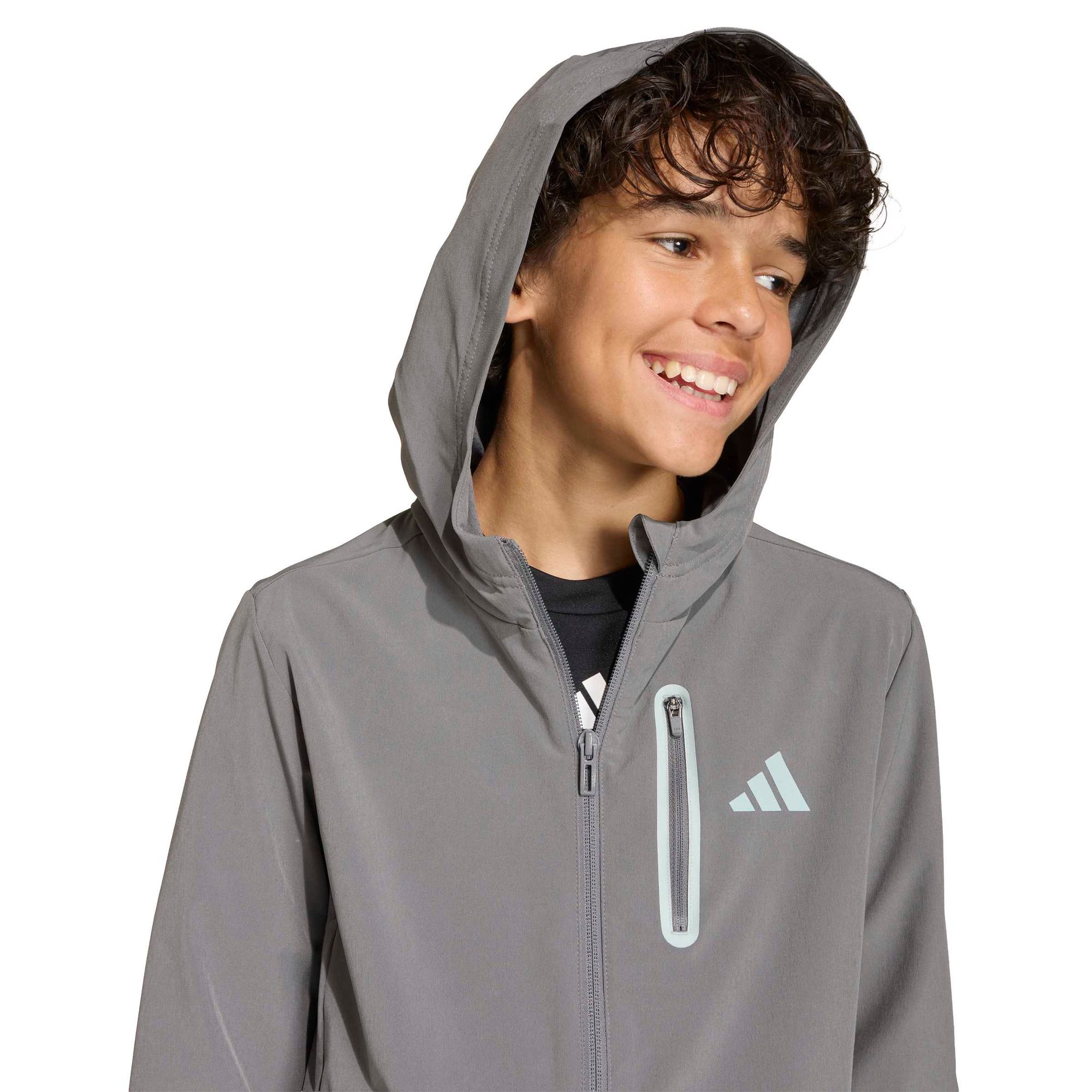 Kinder sind ständig in Bewegung und ihre Kleidung sollte jeden Sprung, Lauf und Spaß mitmachen. Die Adidas Jacke mit Kapuze für Jungs im Tech-Woven-Design begleitet aktive Tage voller Spiel und Abenteuer. Gefertigt aus einfach gewebtem Material bietet diese Jacke Strapazierfähigkeit und Komfort für den Alltag.