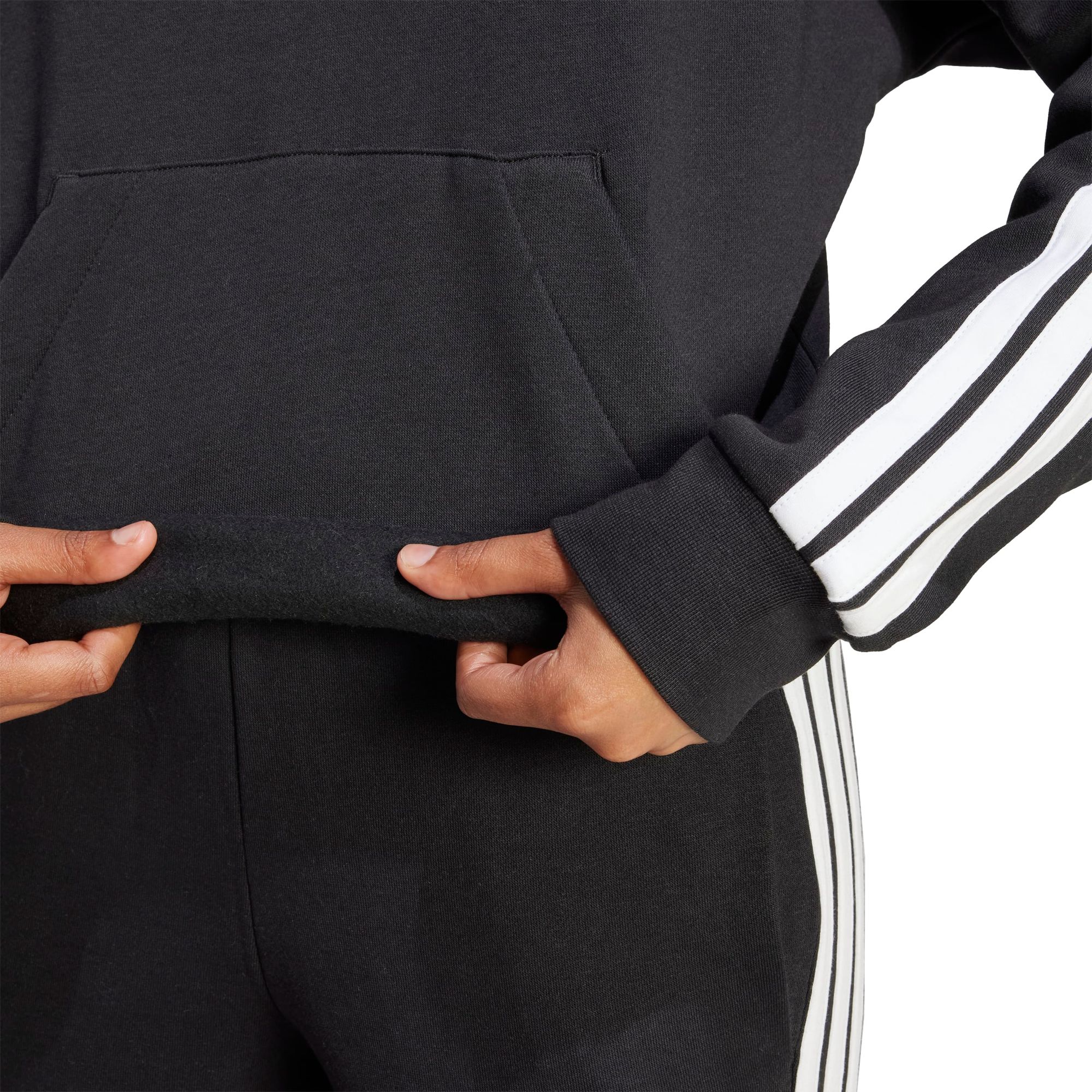 Dein aktiver Lifestyle verlangt nach Komfort. Hier kommt dieser adidas Hoodie ins Spiel. Er ist aus superweichem Fleece gefertigt und hält dich kuschelig warm, egal ob du Besorgungen machst oder einfach nur zu Hause faulenzt. Klassische 3-Streifen an den Ärmeln und ein kleines 3-Streifen Logo auf der Vorderseite sorgen für einen sportlichen Touch.
