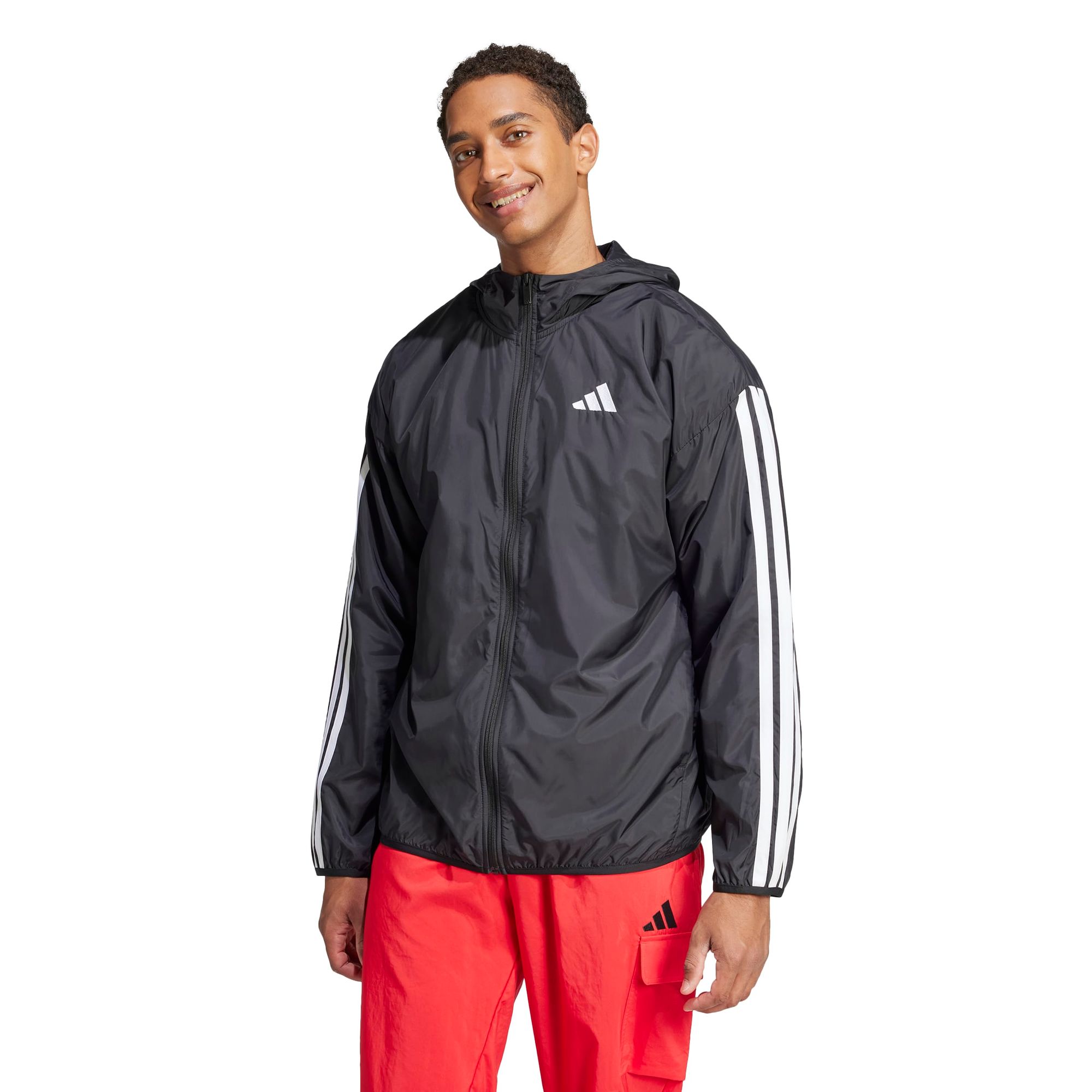 Dieser adidas Windbreaker macht alles mit. Das einfach gewebte Material ist glatt und leicht und sorgt mit einem Mesh-Futter für ein Plus an Komfort. Die klassischen 3-Streifen an den Ärmeln verpassen ihm außerdem einen sportlichen Vibe.