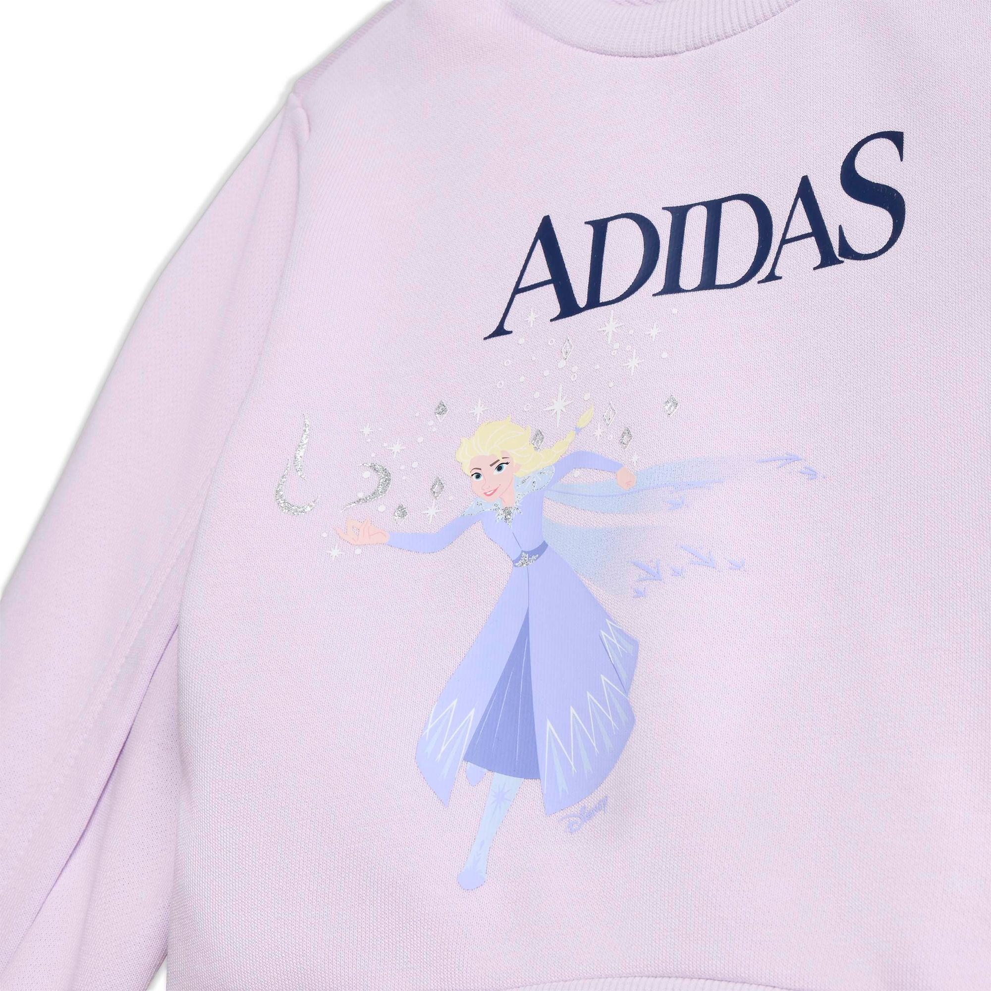 Das adidas Disney Die Eiskönigin Jogger Set verleiht der Kindergarderobe einen Hauch von Magie. Die Grafik auf dem Oberteil ist inspiriert von den beliebten Filmfiguren und regt die Fantasie der Kleinen an.