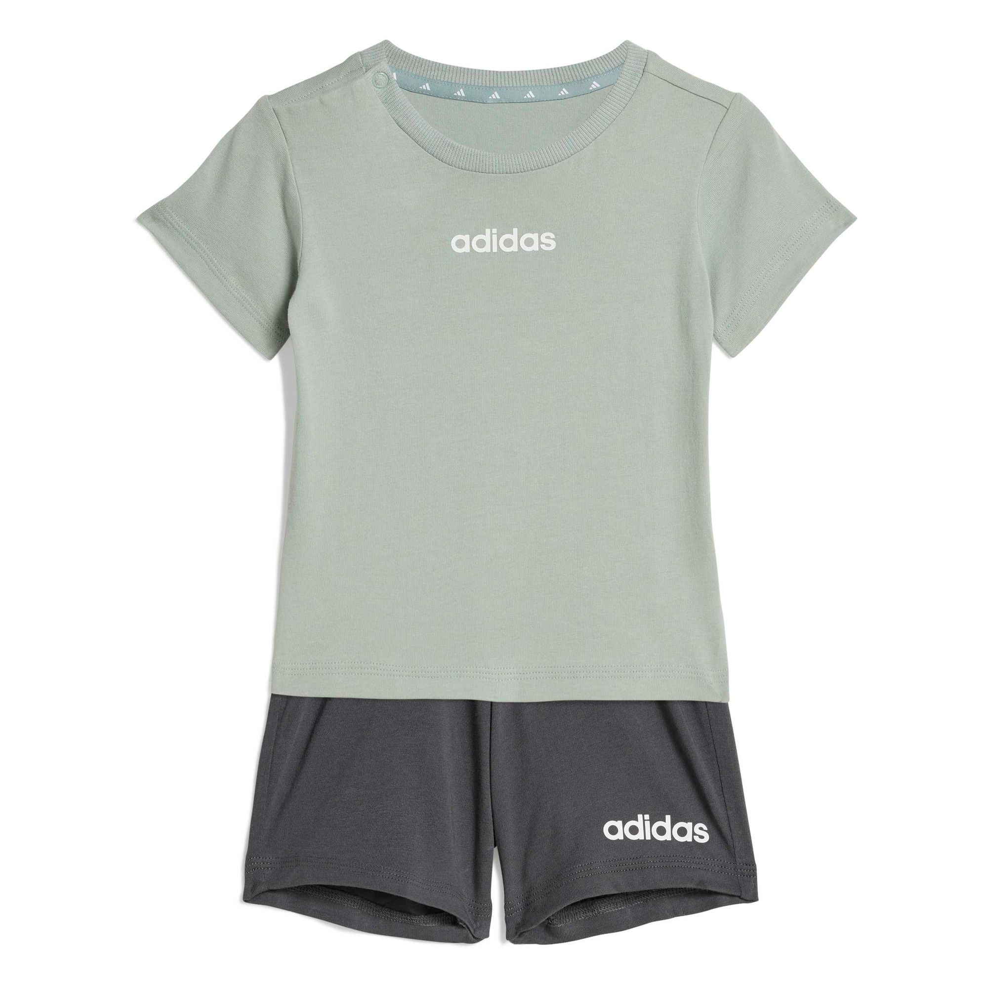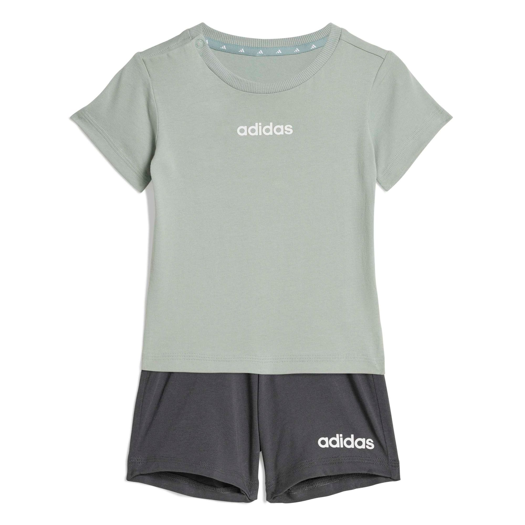 Dieses Set aus T-Shirt und Shorts für Babys und Kleinkinder ist perfekt für aktive Kids. Ob beim Krabbeln oder beim Mittagsschlaf, das weiche, leichte Material sorgt immer und überall für Komfort. Das klassische adidas Logo auf der Vorderseite sorgt außerdem für einen sportlichen Touch.