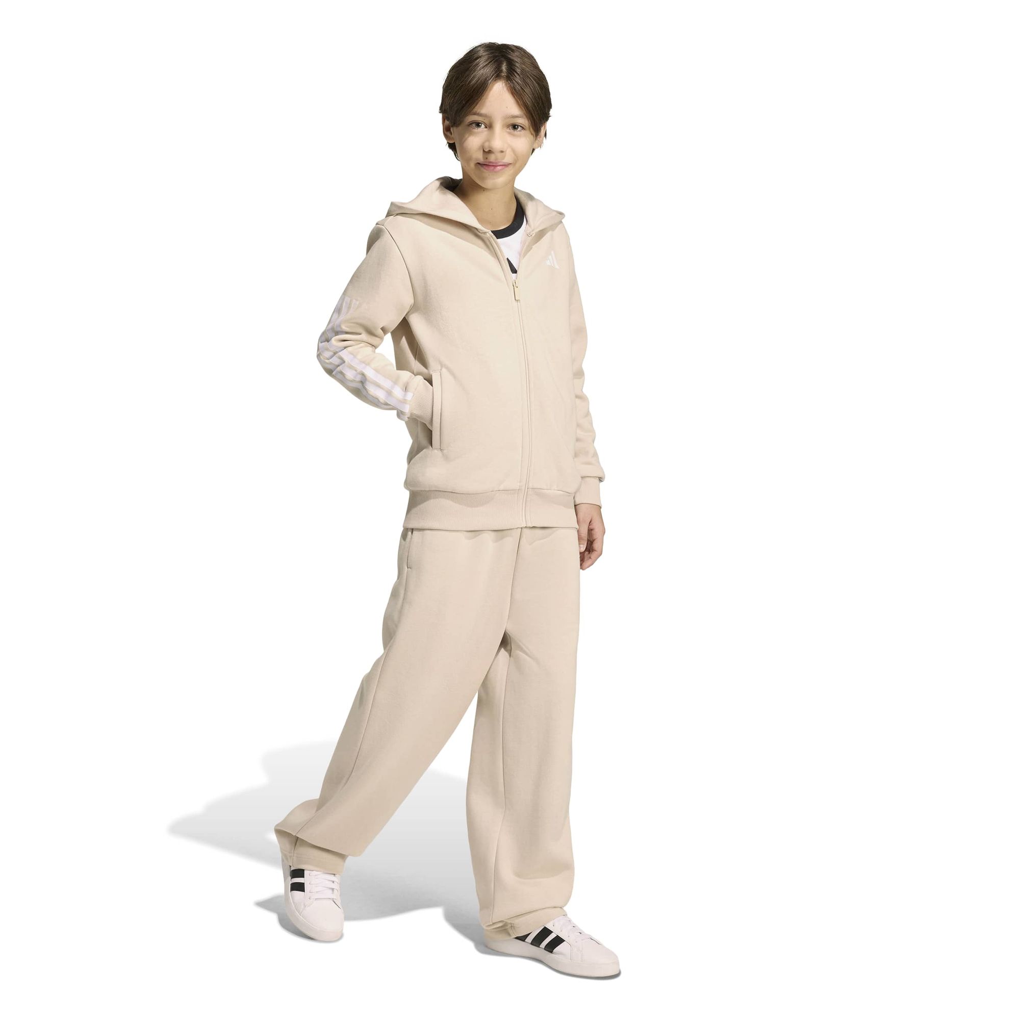 Dieser adidas Trainingsanzug für Kinder und Teens punktet mit vielseitigem Style und Alltagstauglichkeit. Ob als Set getragen oder gemixt mit deinen Lieblingsstücken: die neuen Teile bringen frischen Wind in deinen Alltagslook. Gemütlich zuhause oder unterwegs, das weiche Fleece sorgt für Komfort, der perfekt für entspannte Stunden oder kühle Tage draußen ist.