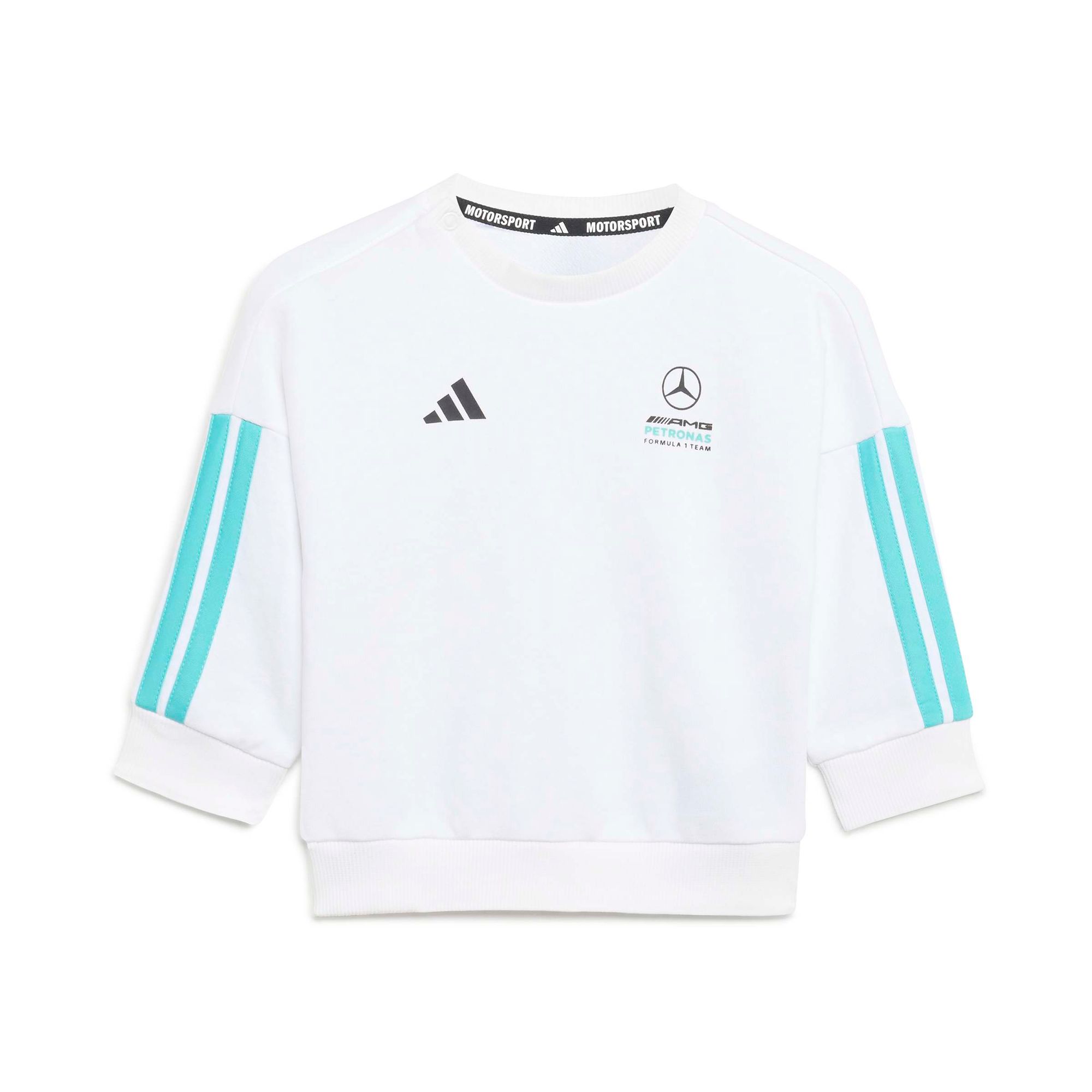 Führe dein Kind mit der Mercedes-AMG Petronas Formula 1 Team DNA Baby Jogginghose und dem Longsleeve mit dem kultigen 3-Streifen Logo in die Welt des Motorsports ein.