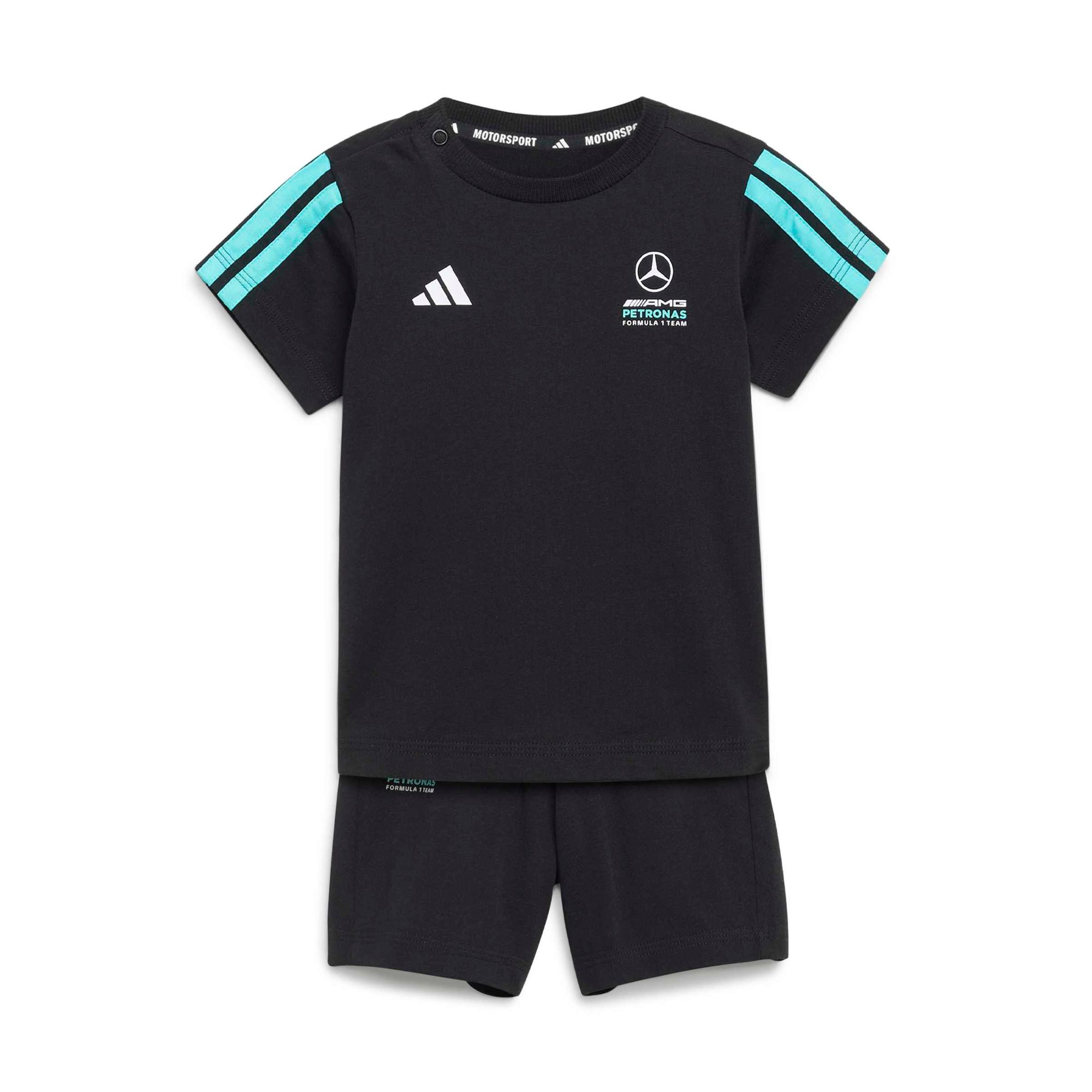 Im Mercedes-AMG Petronas Formula 1 Team DNA Jogginganzug mit kurzen Ärmeln sind auch die Kleinsten bequem und stylish gekleidet. In diesem liebevoll gefertigten Jogginganzug wird sich dein Kind beim Spielen und allen anderen Aktivitäten rundum wohlfühlen.