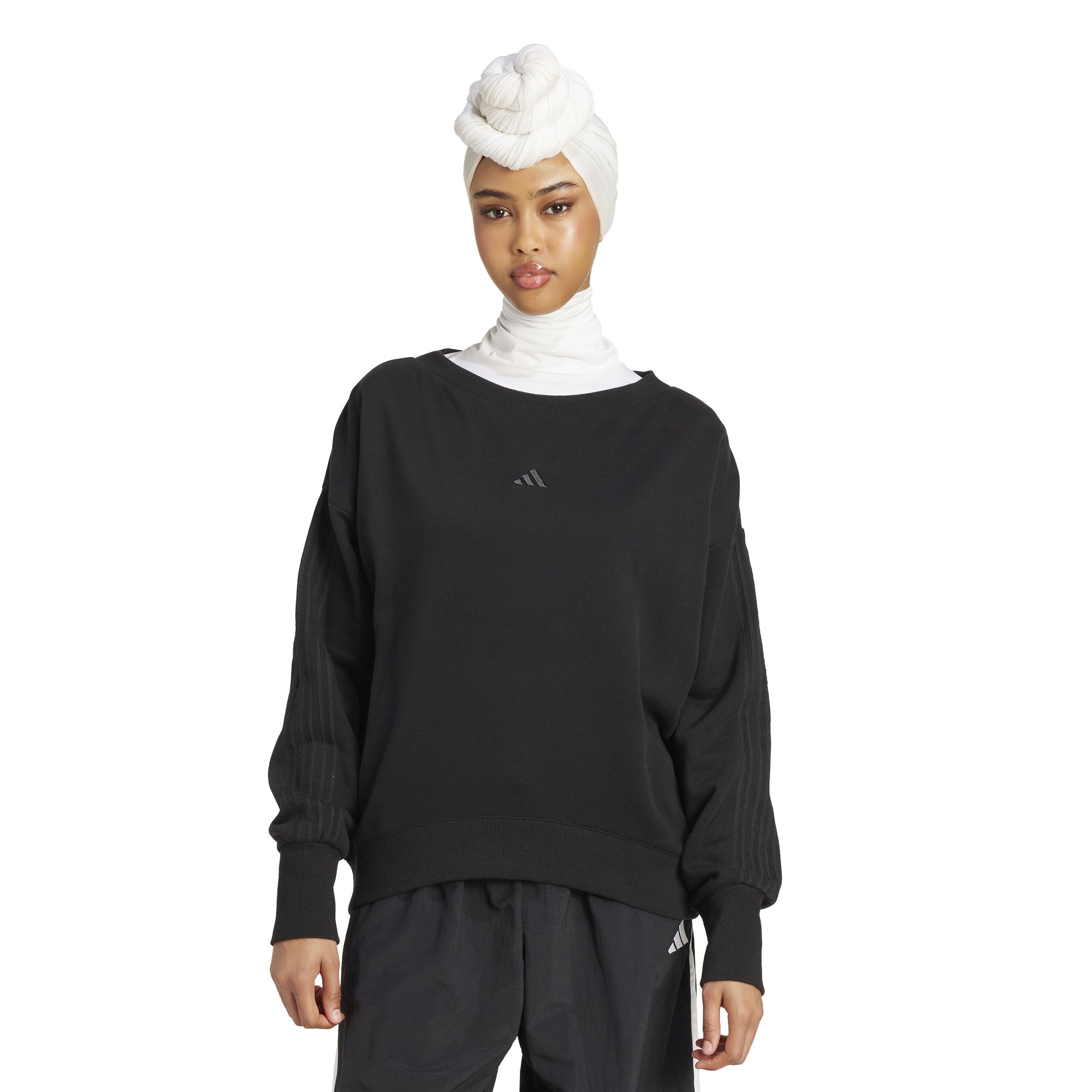 In diesem Sweatshirt von adidas fühlst du dich stylisch und bequem. Das French Terry-Material fühlt sich weich an auf deiner Haut. Der Bootsausschnitt verleiht einen eleganten Touch. Egal, ob du zu Hause entspannst oder dich auf den Weg zum Kaffee machst, dieses Sweatshirt ist eine einfach gute Wahl.