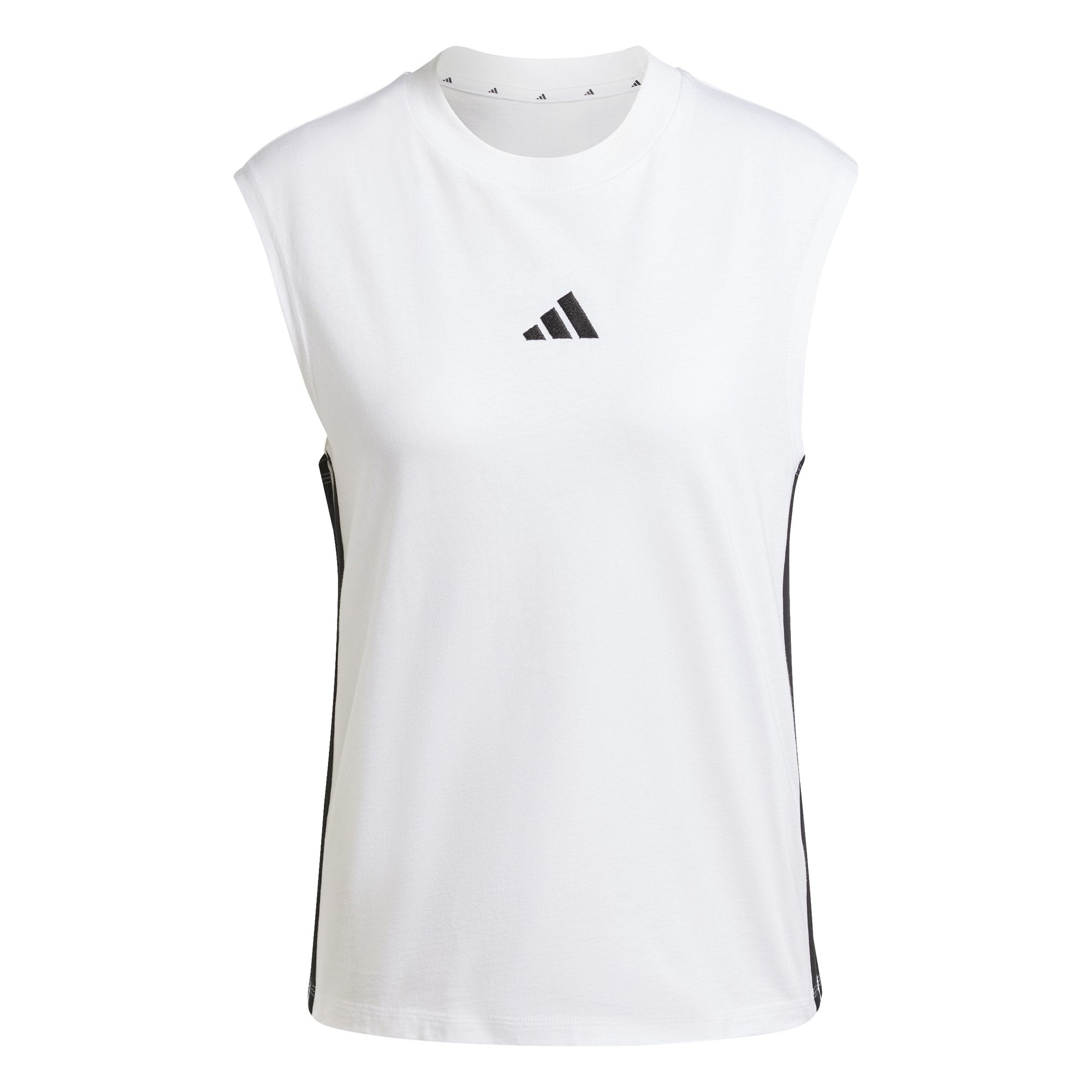 Bei diesem adidas Tanktop dreht sich alles um Komfort und Style. Der weiche Baumwolljersey fühlt sich besonders angenehm auf der Haut an. Und die legendären 3-Streifen an den Seiten verpassen dem Ganzen einen sportlichen Vibe.