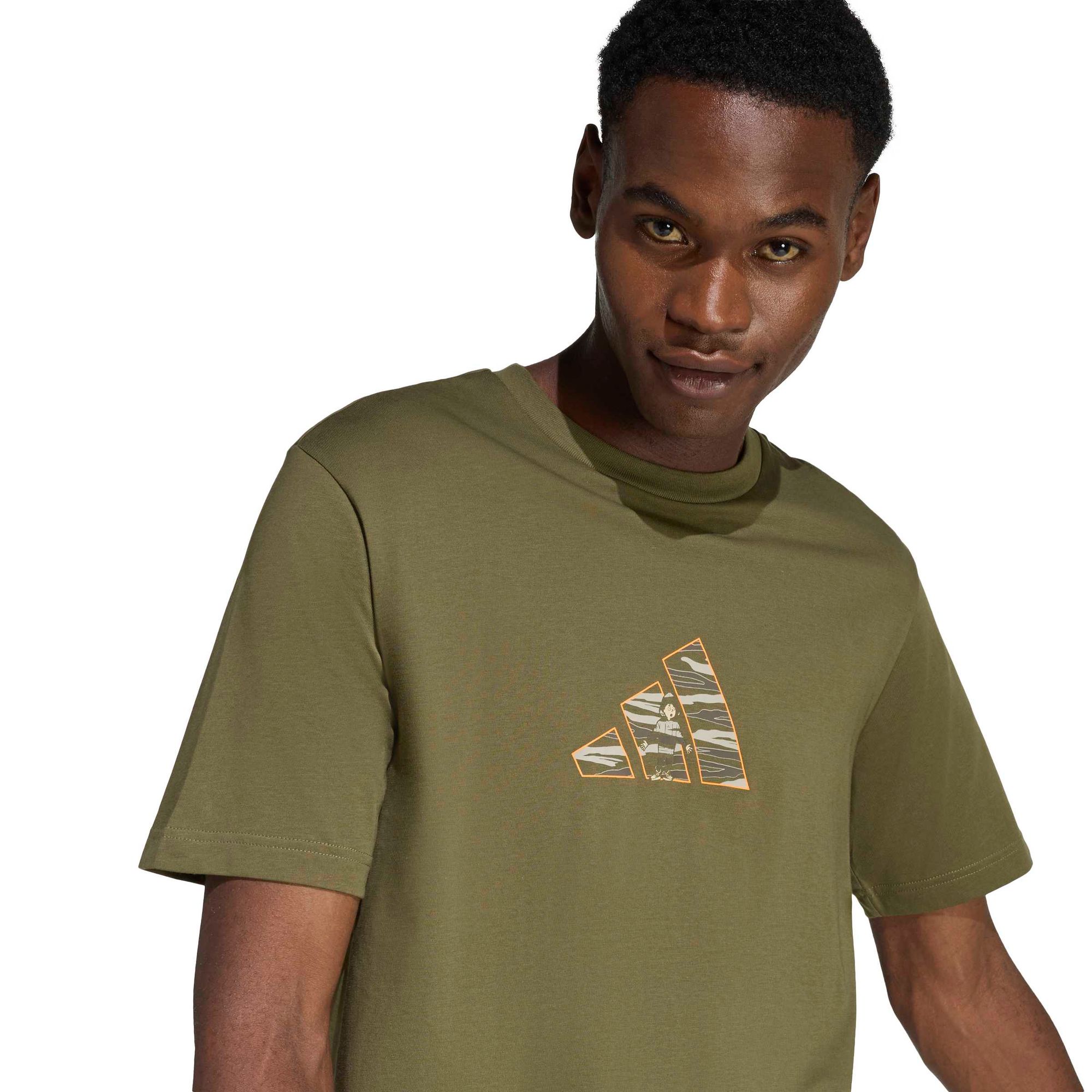 Das adidas Camo Explorer Graphic T-Shirt ist für die freie Natur gemacht, aber so gestylt, dass es mit dem schnellen Tempo der modernen Stadt mithalten kann.